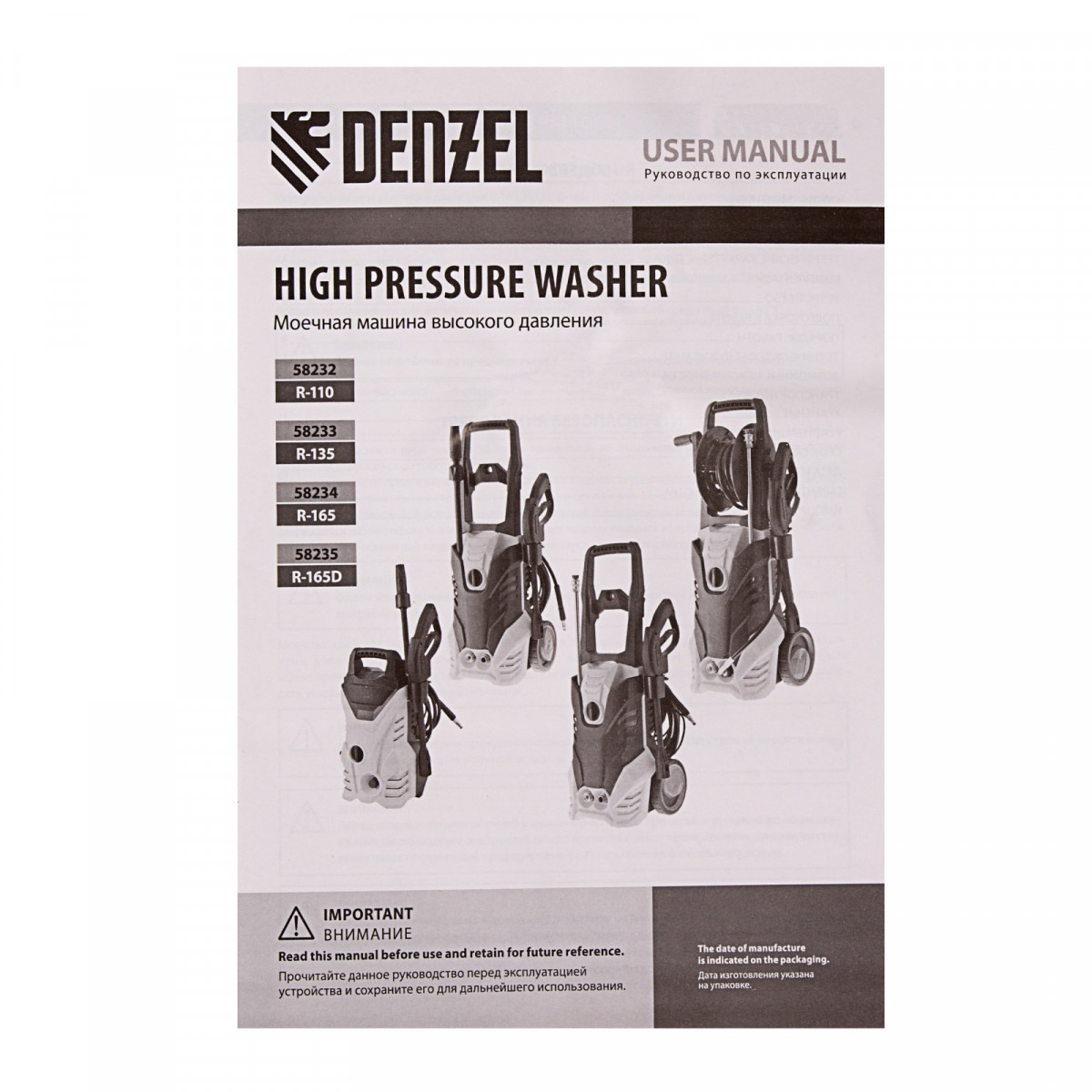 Моечная машина высокого давления R-165, 2200 Вт, 165 бар, 7 л/мин, колесная Denzel
