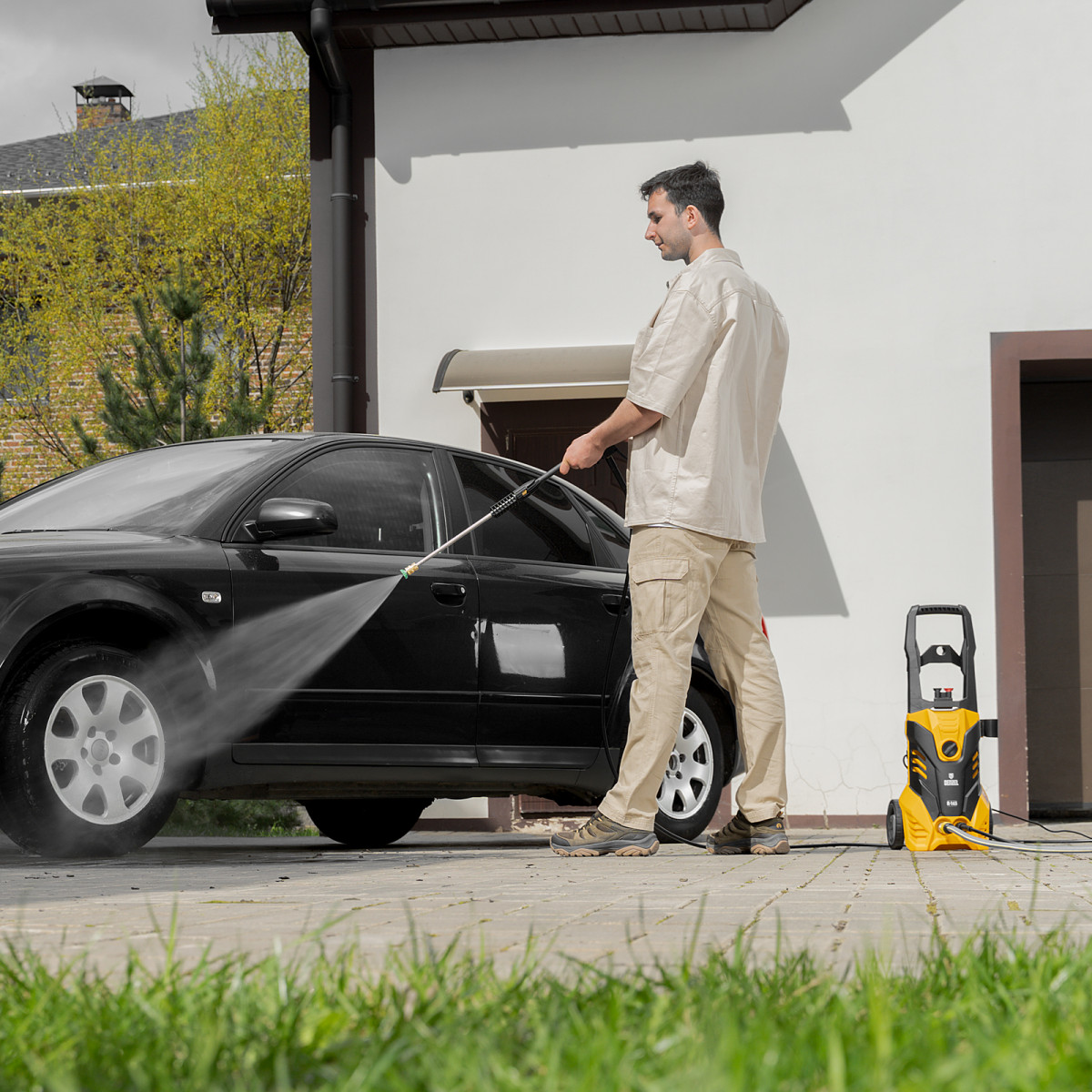 • Комфортная транспортировка — мойка оснащена ручкой и крупными колесами.