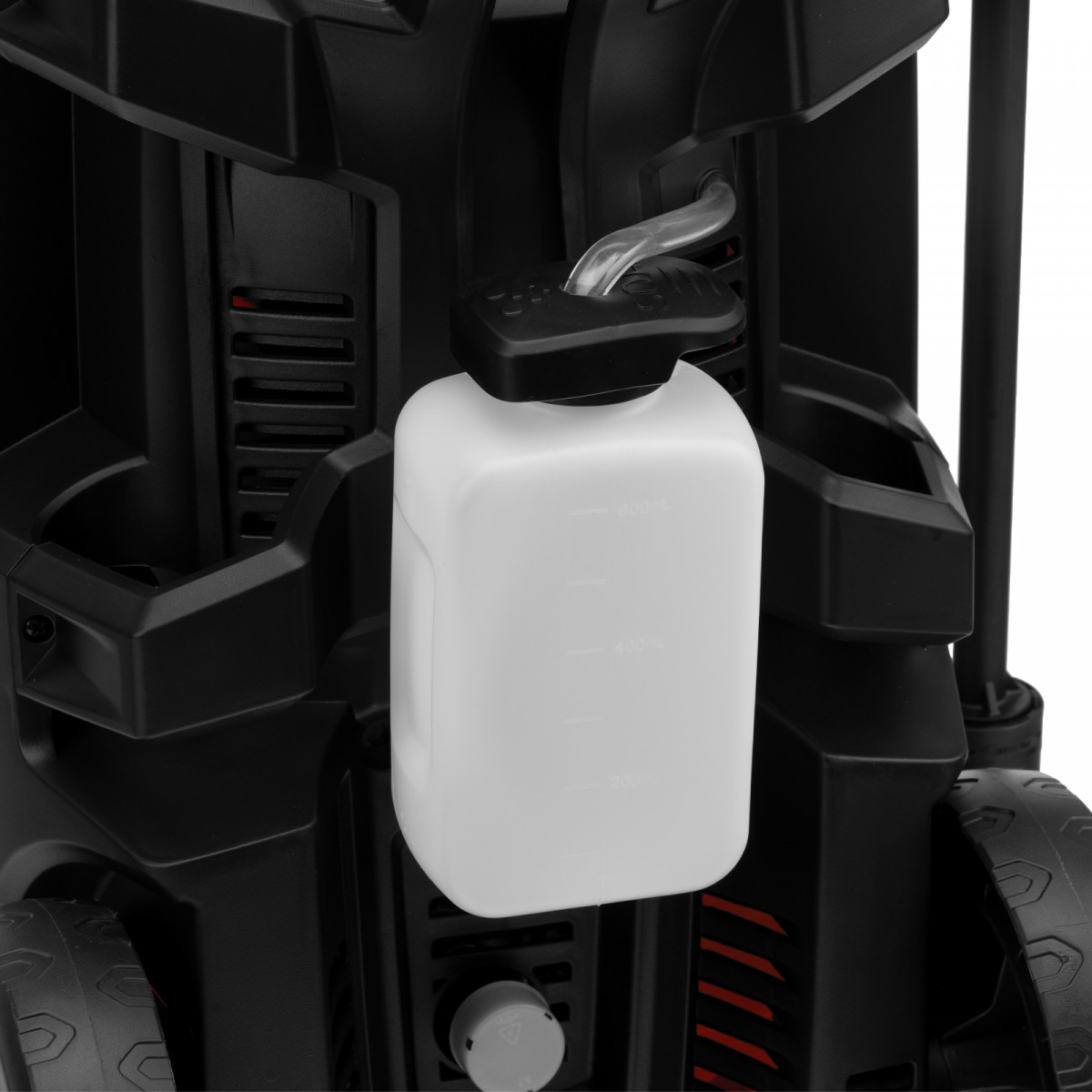 - Длина шланга и кабеля 5 м — не нужно часто перемещать машину, можно работать на удалении от розетки.