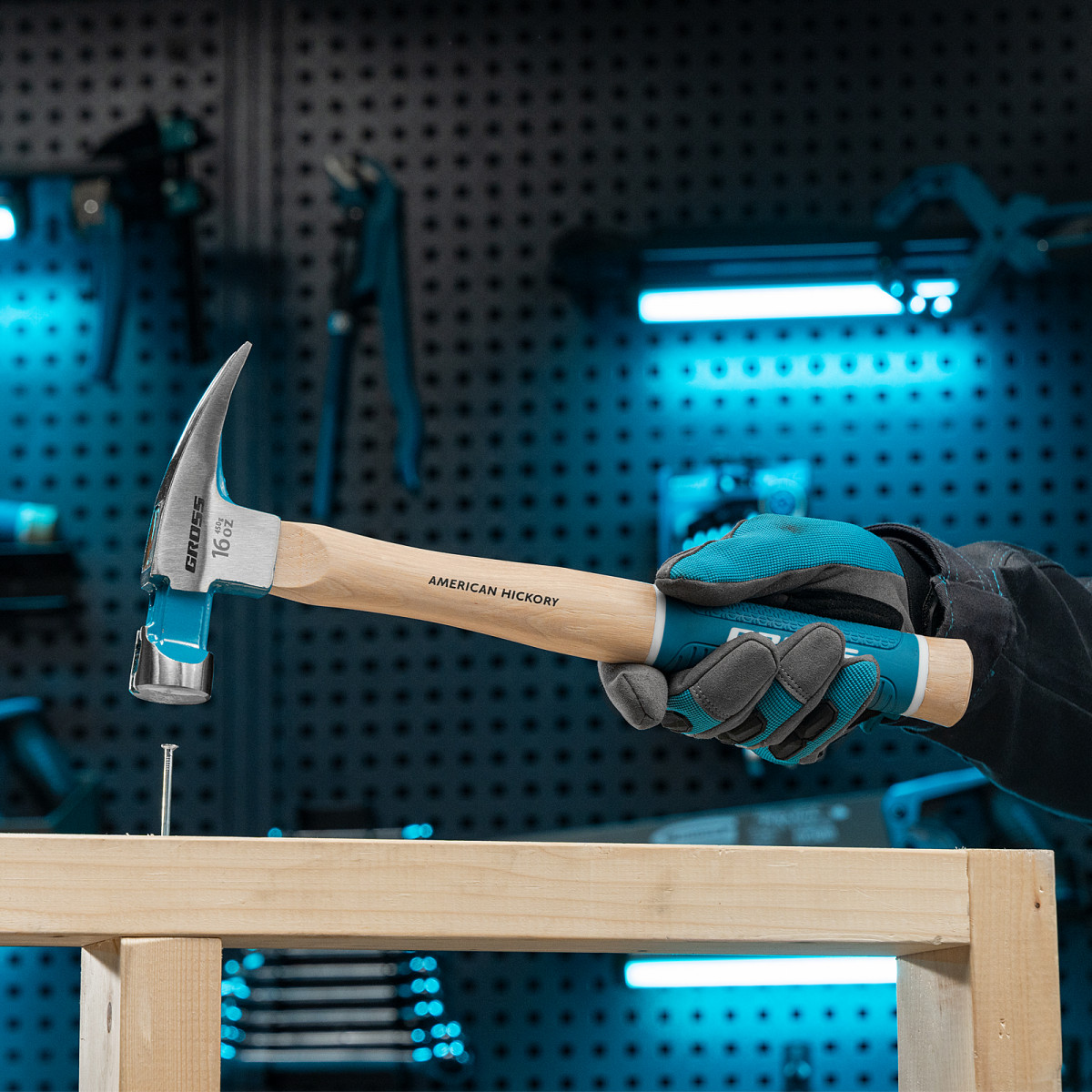 Молоток-гвоздодер, 450 г, угол 75, магнит, обрезиненная рукоятка American hickory GROSS