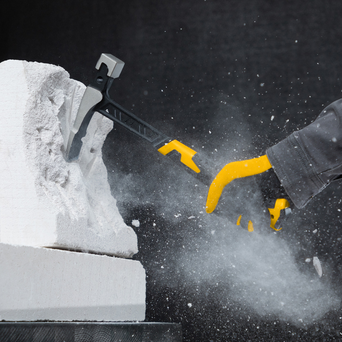 Цельнокованый молоток каменщика Denzel 10633 с бойком весом 680 г, с двухкомпонентной обрезиненной рукояткой, используется для выполнения работ с каменной или кирпичной кладкой. Квадратный боек предназначен для нанесения ударов, а удлиненный заточенный носок — для разрубания камня или кирпича. Гвоздодер применяется для выпрямления небольших гвоздей.