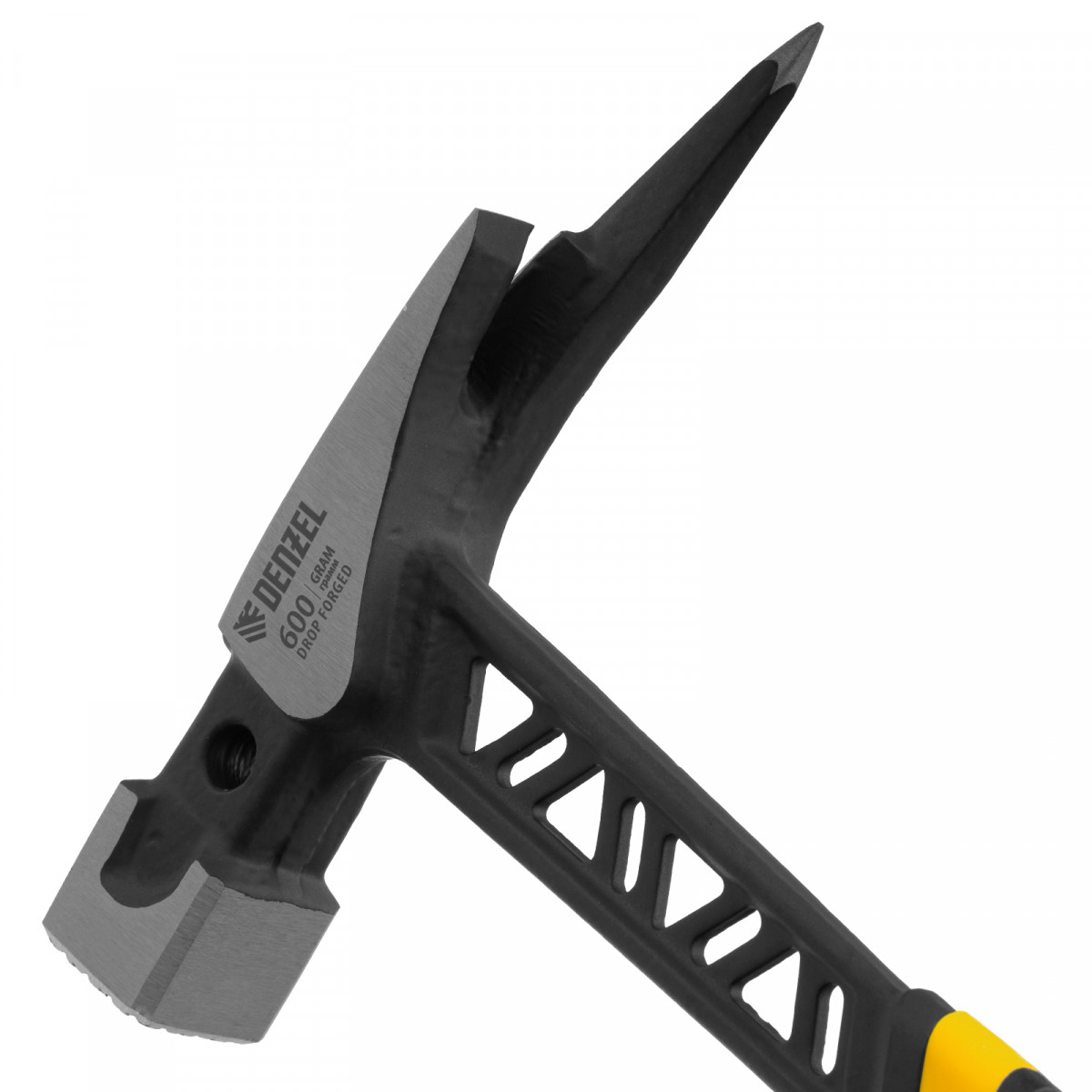 Молоток кровельщика 600 г, цельнокованый, боек с магнитом, двухкомп. обрезин. рук-ка Denzel