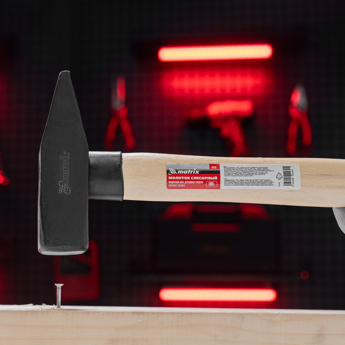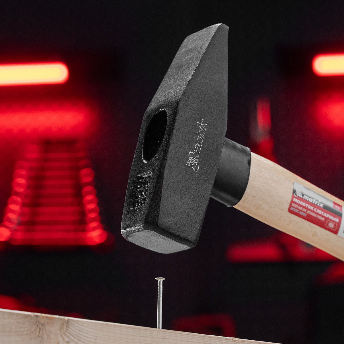 Молоток слесарный, 1000 г, квадратный боек, деревянная рукоятка Matrix
