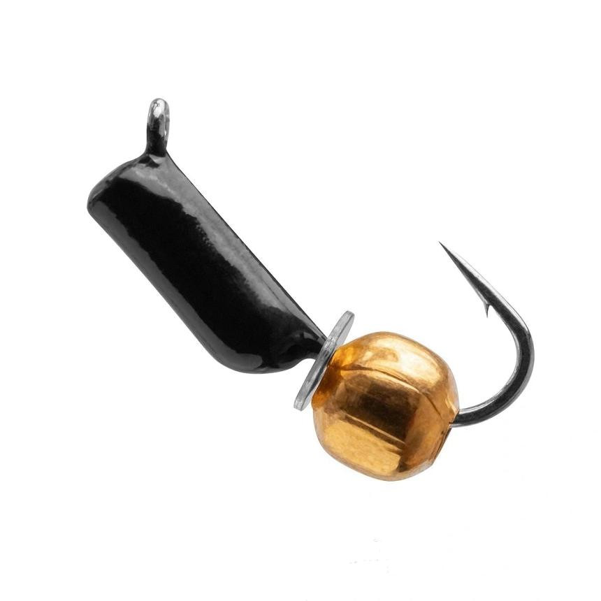 Мормышка обладает золотым шариком, покрытым паеткой, что увеличивает ее привлекательность для рыбы.