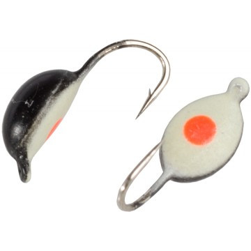 Форма мормышки с фосфорным нанесением обеспечивает высокую видимость в толще воды даже при плохой освещённости.