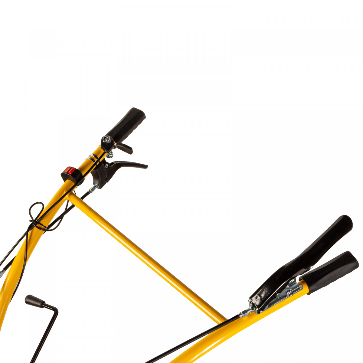 - Эргономичность — рукоятки укреплены металлической перекладиной, а в месте захвата прорезинены для снижения вибраций.