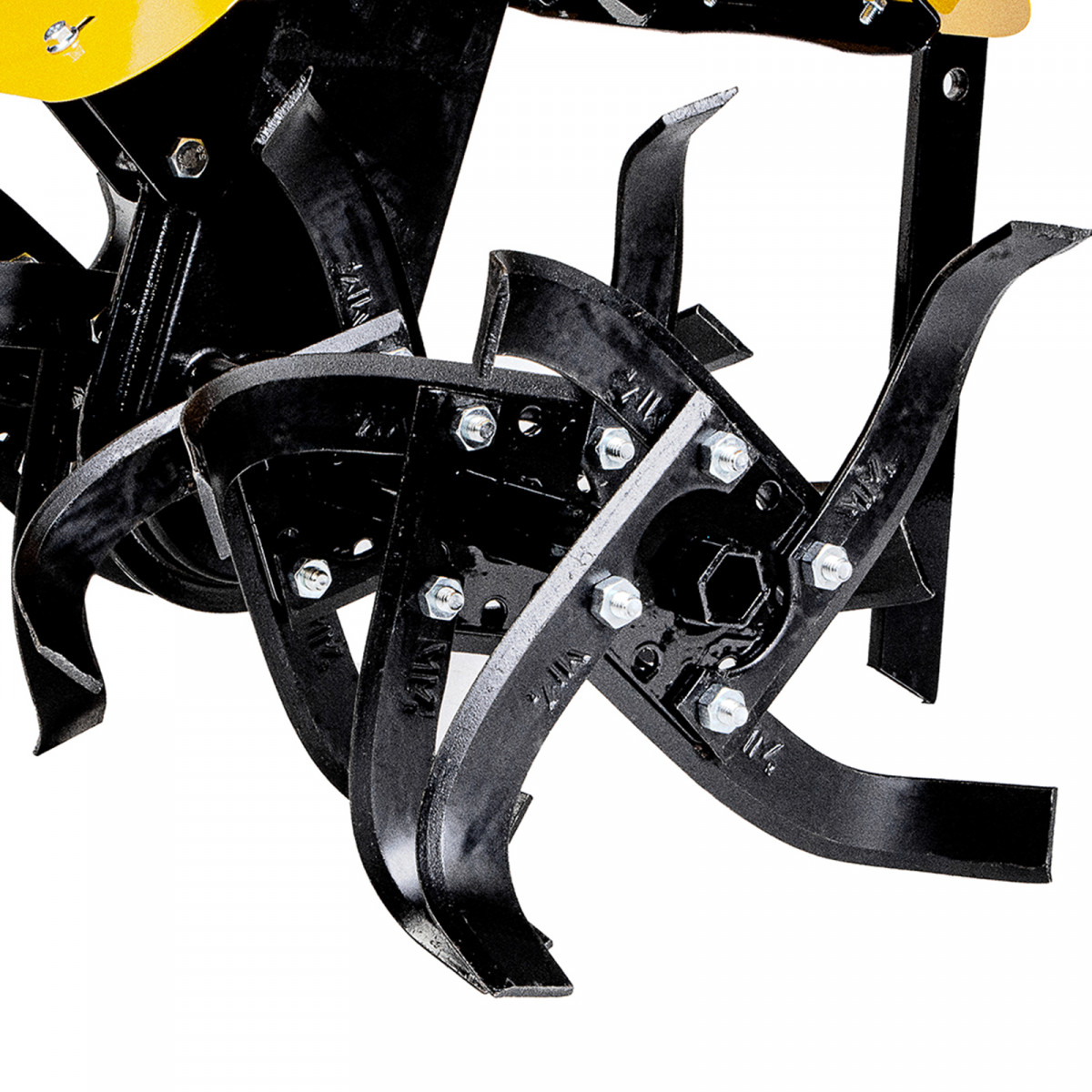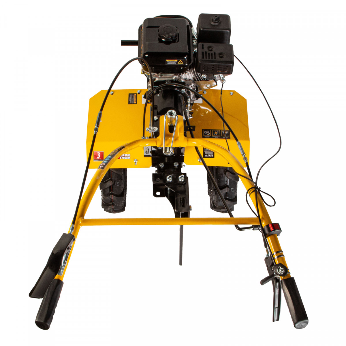 - Комфортное управление — регулятор оборотов мотора и кнопка пуска выведены на рукоятку перед оператором, поэтому можно оперативно менять режим вспашки в зависимости от типа почвы, не наклоняясь.