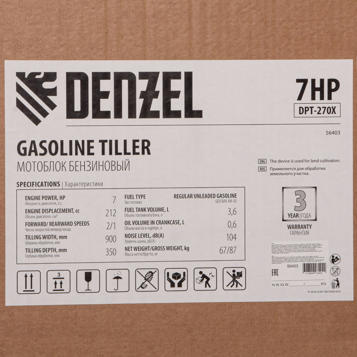 Мотоблок DPT-270X, 7 л.с, дисковое сцепление, ширина 90 см, глубина 35 см, фрез 3 х 4, ВОМ, передачи 2В/1Н Denzel