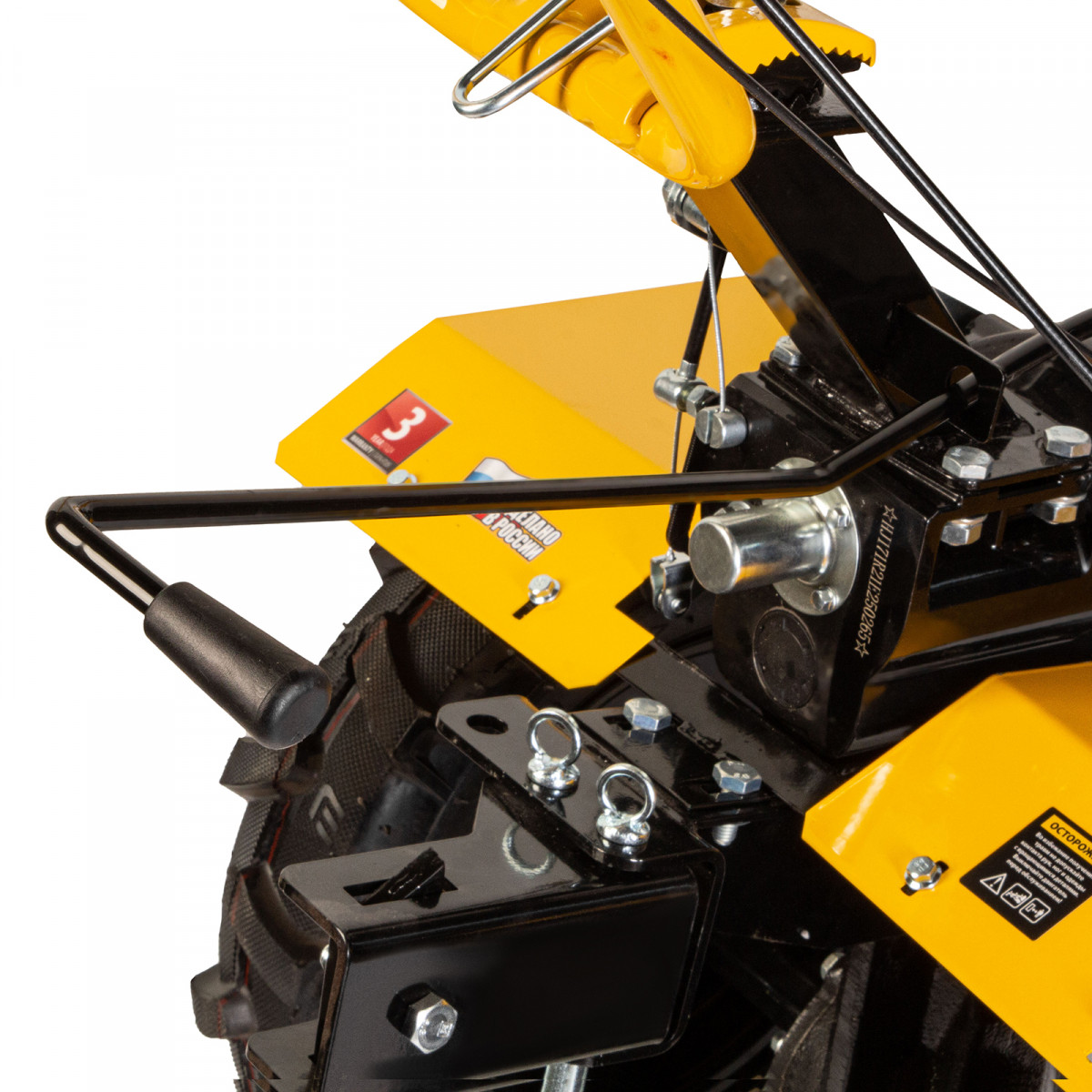 - Комфортная транспортировка — усиленная рукоятка-бампер позволяет с удобством перемещать и загружать мотоблок в транспорт.