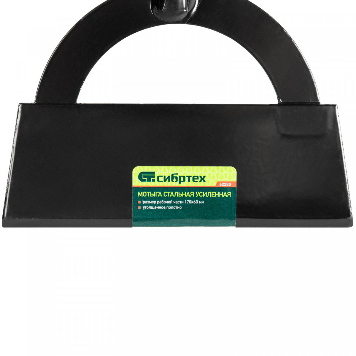 Усиленная стальная мотыга Сибртех 62280 с рабочей частью размером 170 х 60 мм, без черенка, — инструмент для работы в саду и на огороде. Ее используют для рыхления почвы, удаления сорняков, окучивания растений. Полотно толщиной 2,5 мм придает особую прочность инструменту. Мотыга совместима с черенком диаметром 30 мм (приобретается отдельно).