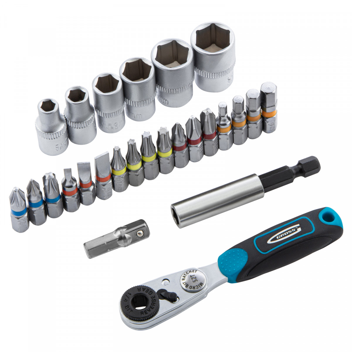 Набор бит и головок торцевых, 1/4, магнитный адаптер, сталь S2, пластиковый кейс, 26 предметов Gross