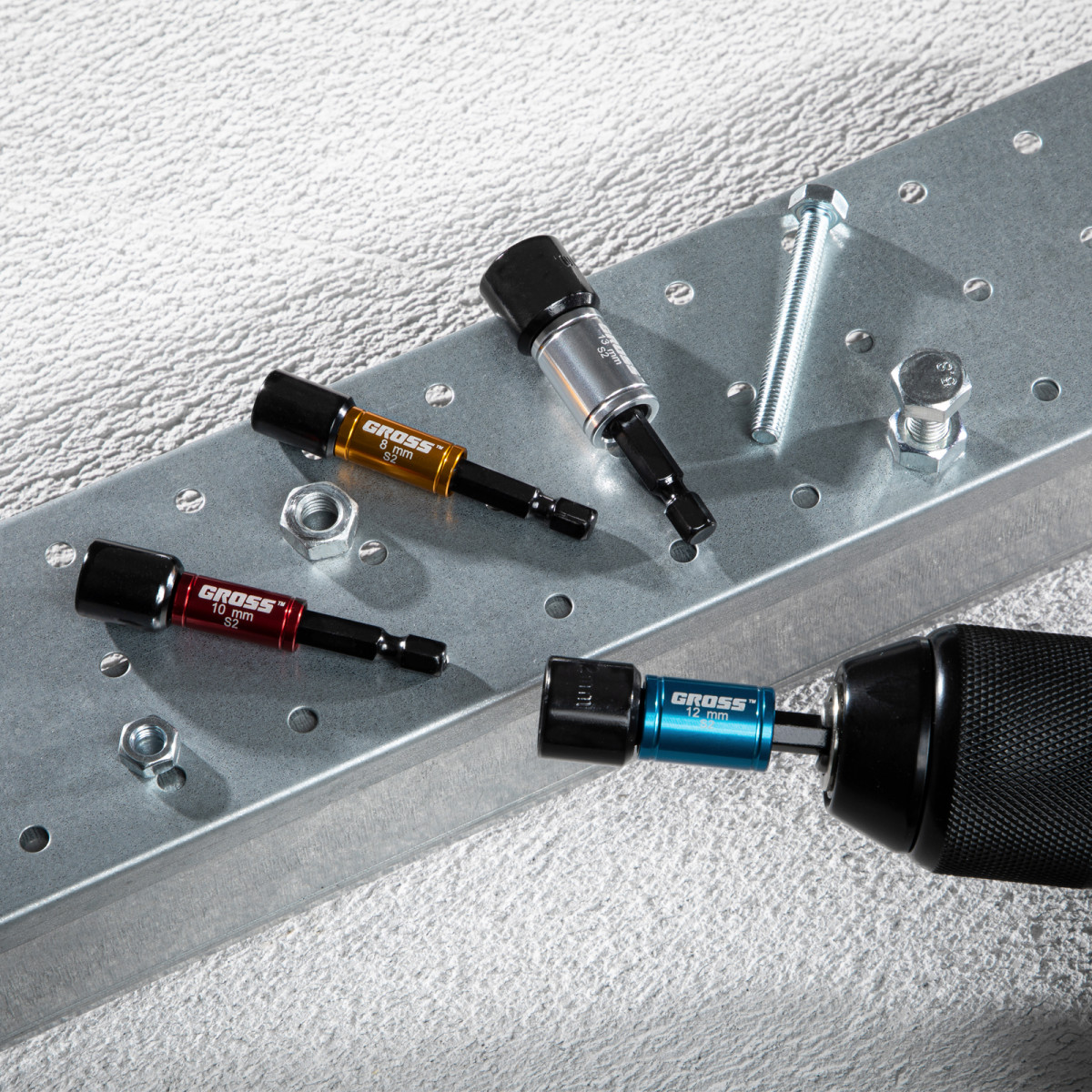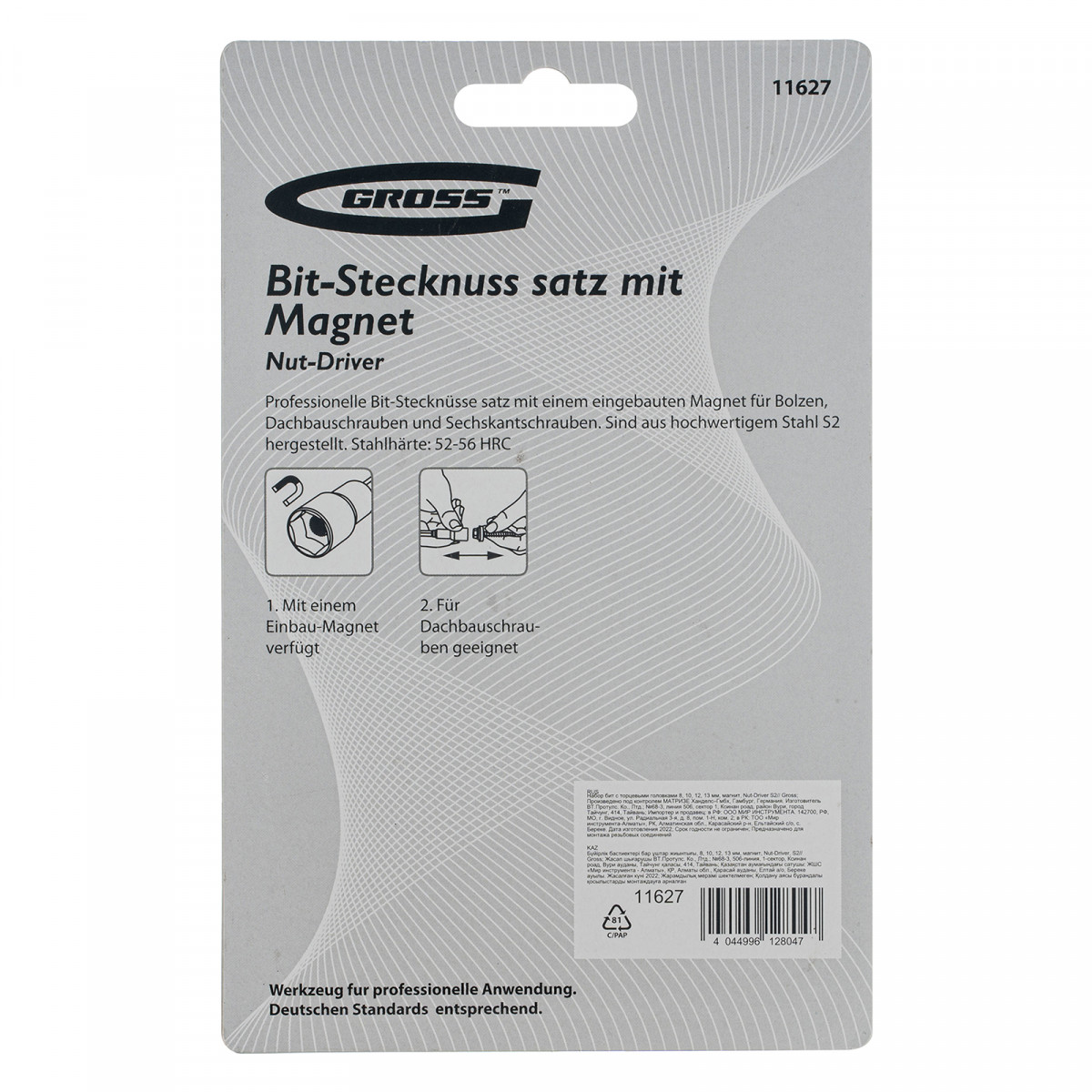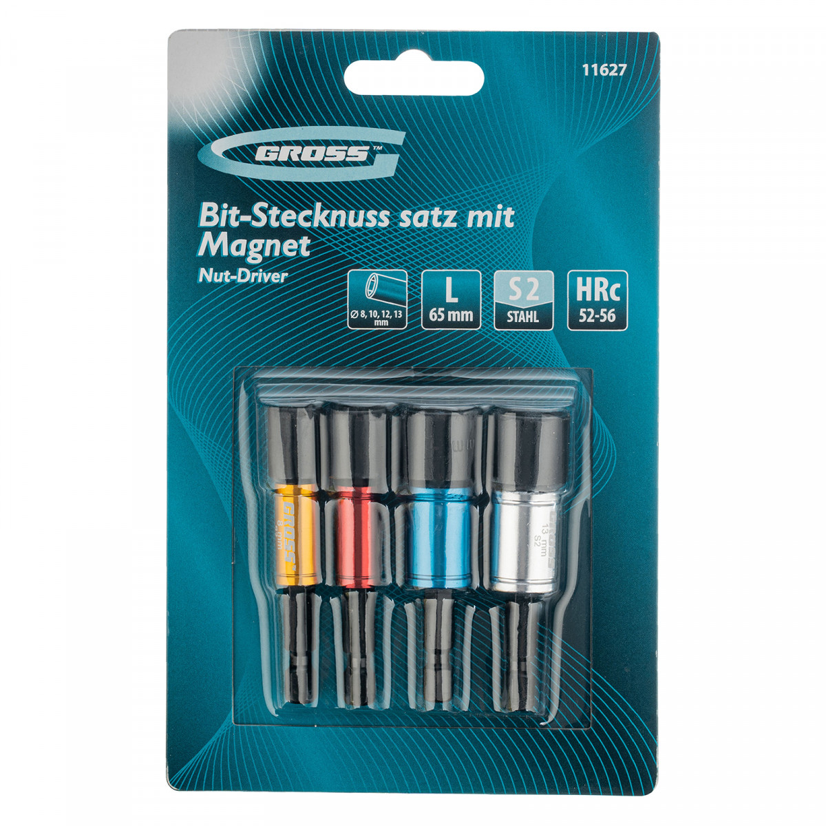 Набор бит с торцевыми головками 8, 10,12, 13 мм, магнит. Nut-Driver, S2 Gross