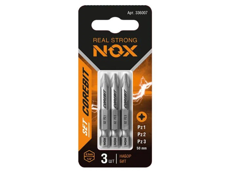 Бита NOX COREBIT – профессиональная бита для регулярных крепежных работ.Изготовлена из легированной стали марки S2, обладающей повышенной прочностью и износостойкостью. Твёрдость стали по шкале Роквелла 58-62 HRC.Шестигранный хвостовик ¼ HEX исключает проскальзывание оснастки в патроне электроинструмента.Биты NOX изготовлены методом фрезеровки , что обеспечивает точность формы биты в соответствии со стандартом DIN и гарантирует высокий ресурс биты.Подходит для работы электродрелью со стандартным трёхкулачковым зажимным патроном и шуруповёртом с шестигранным патроном для быстрой смены насадки.