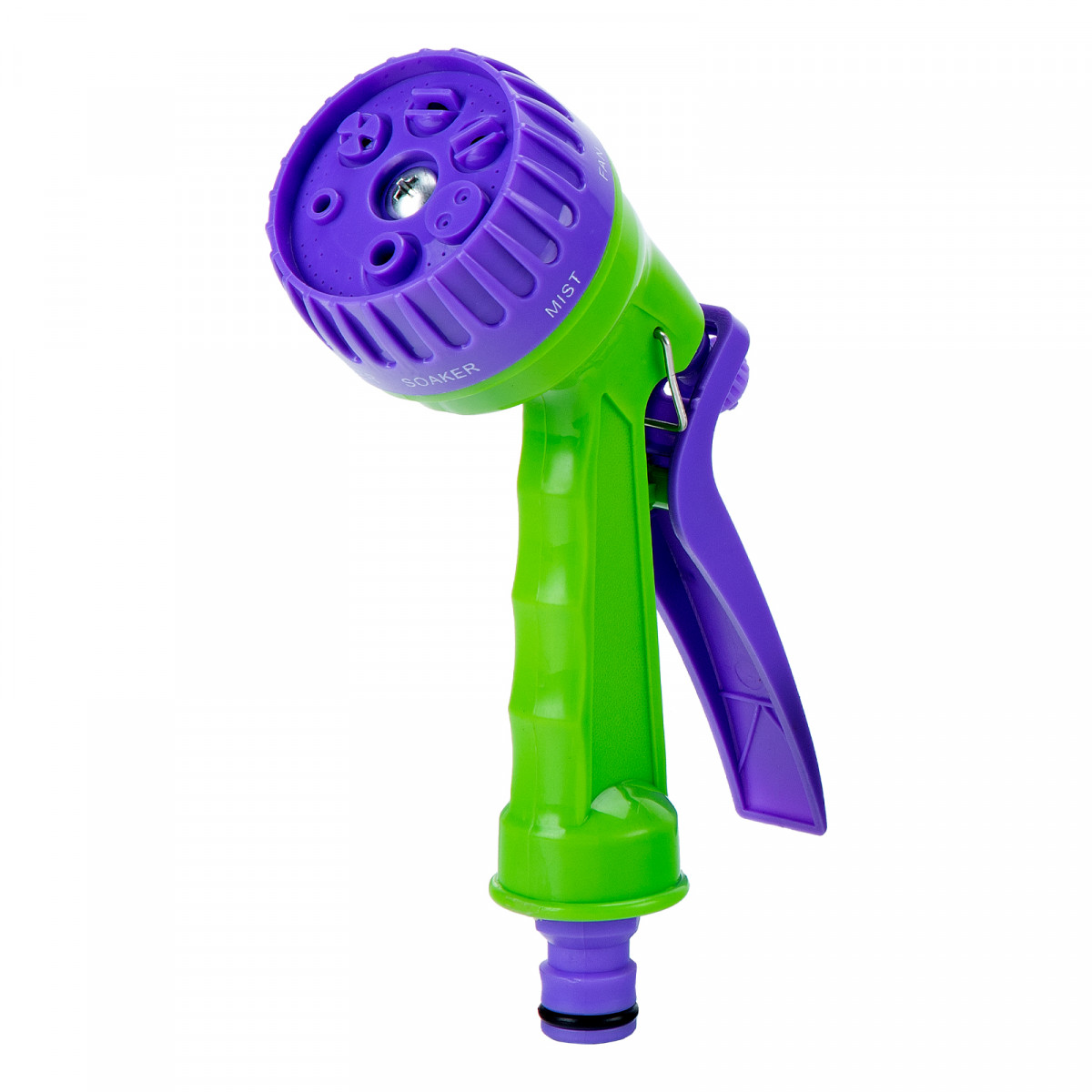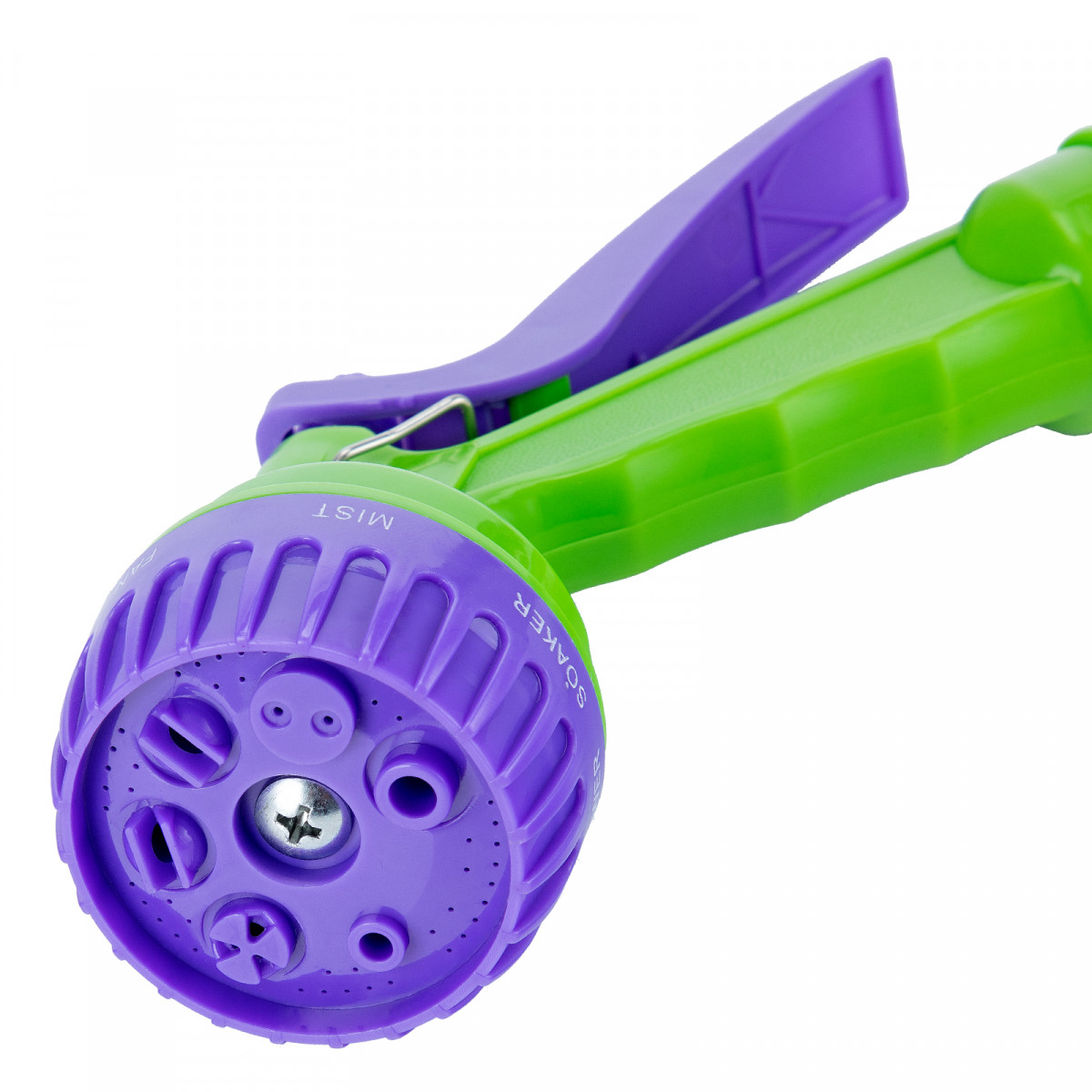- Регулируемая форсунка — можно подобрать оптимальный режим полива с учетом типа растительности: душ, полный поток, жесткая струя, туман, мелкий туман, плоско-горизонтальная или плоско-вертикальная струя.