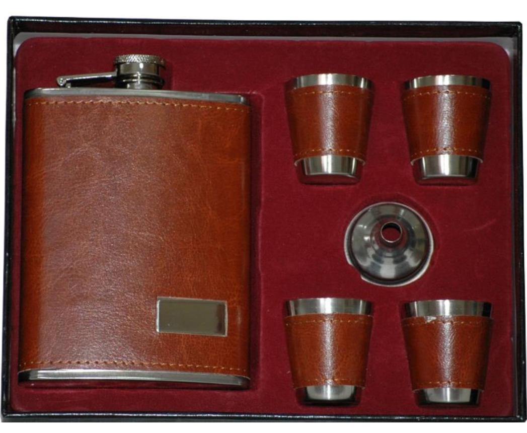Набор Фляжка в коже 240 мл и 4 стопки воронка HELIOS