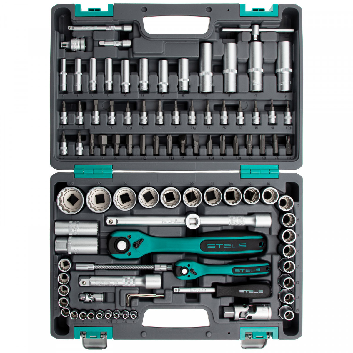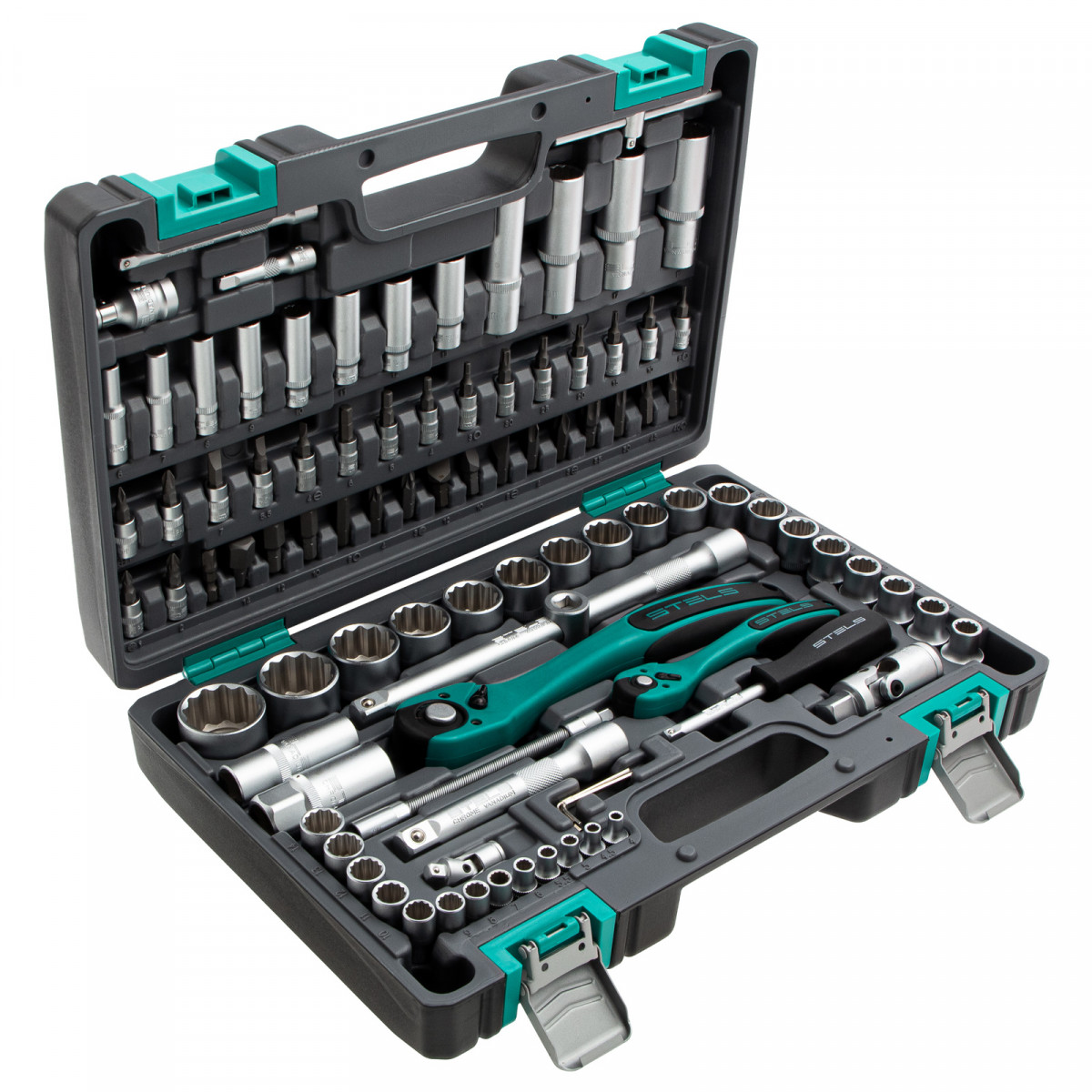 Набор инструментов 1/2", 1/4", CrV, 12 гранные головки, пластиковый кейс, 94 предмета Stels