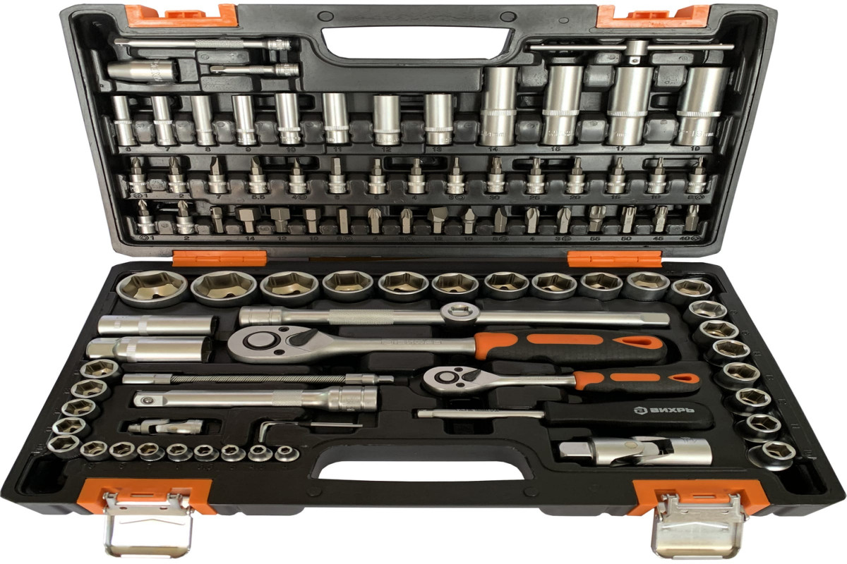 Набор инструментов Вихрь 1/2 , 1/4 , CrV, в кейсе, 94 предмета 73/6/7/5 используется при ремонте автомобилей и другого транспорта и техники. Подходит как для применения дома, так и для профессионального использования.