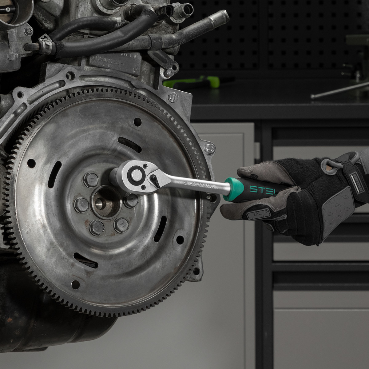 • Комфортная работа в труднодоступных местах — в набор входят ключи-трещотки с 72 зубьями, рабочий шаг составляет всего 5°.