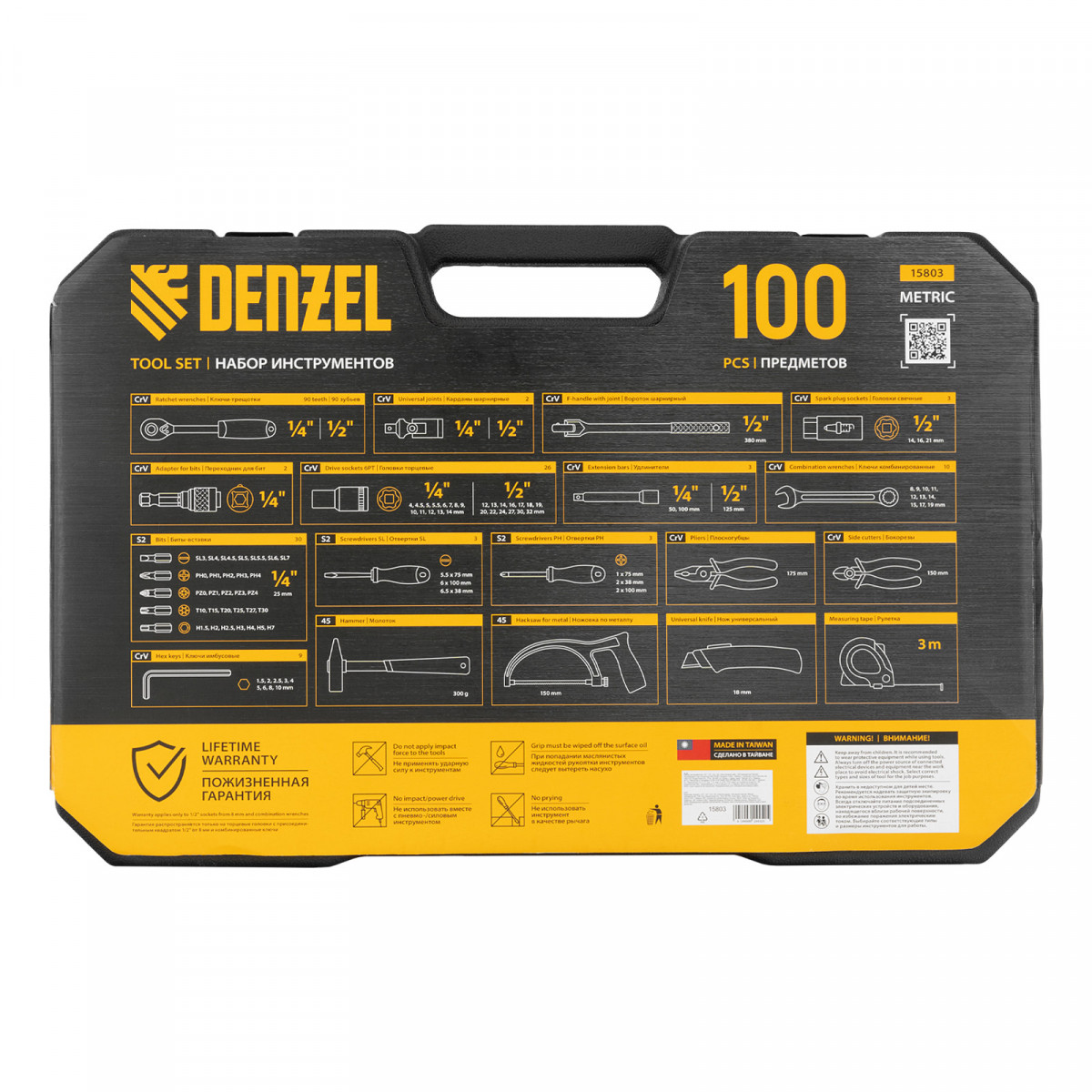 Набор инструментов, 1/2", 1/4", CrV, S2, пластиковый кейс, 100 предметов Denzel