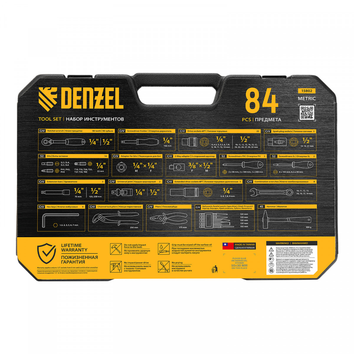 Набор инструментов, 1/2", 1/4", CrV, S2, пластиковый кейс, 84 предмета Denzel