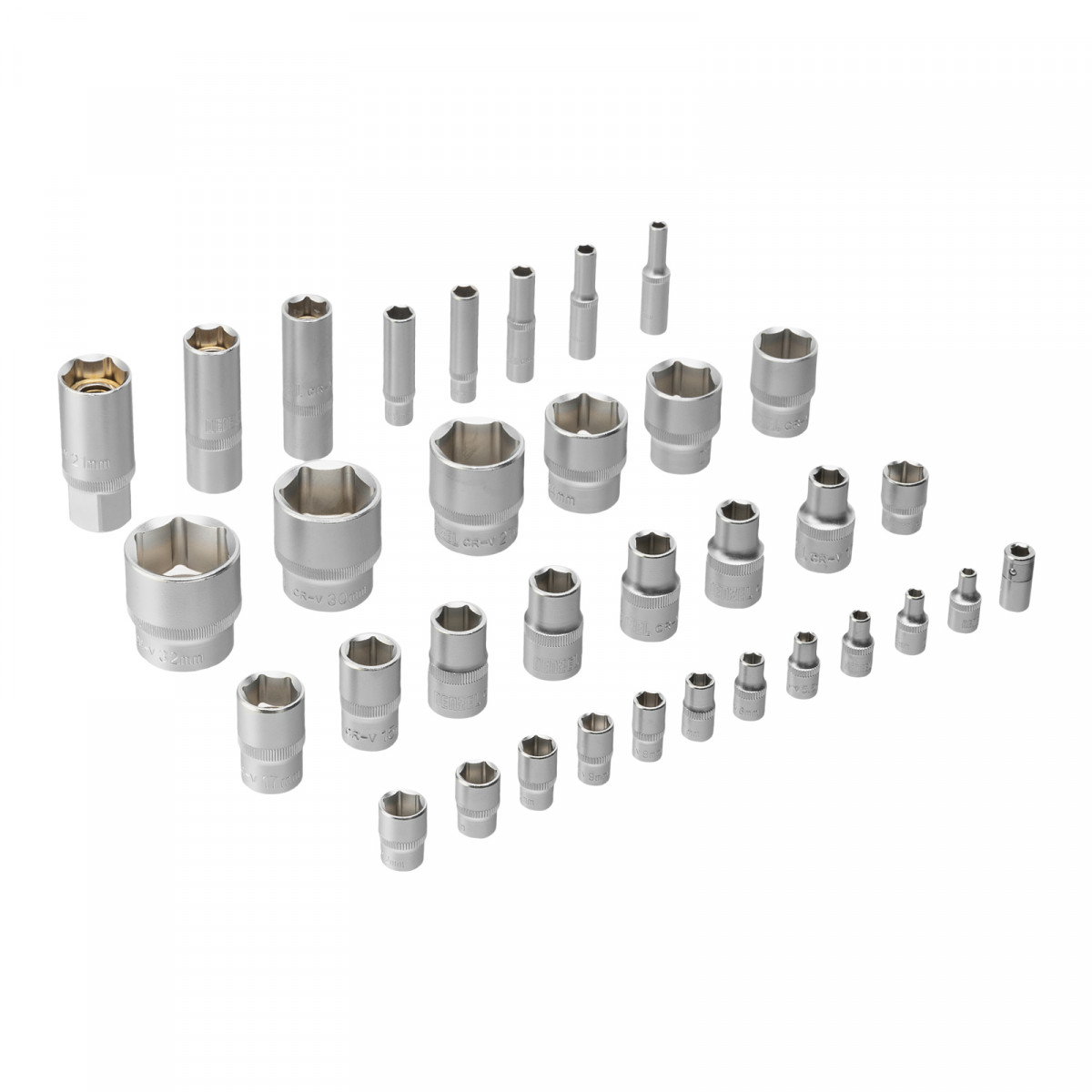 - Продуманная система хранения — элементы набора надежно зафиксированы в ложементе кейса, дополнительные крепления удерживают торцевые головки.