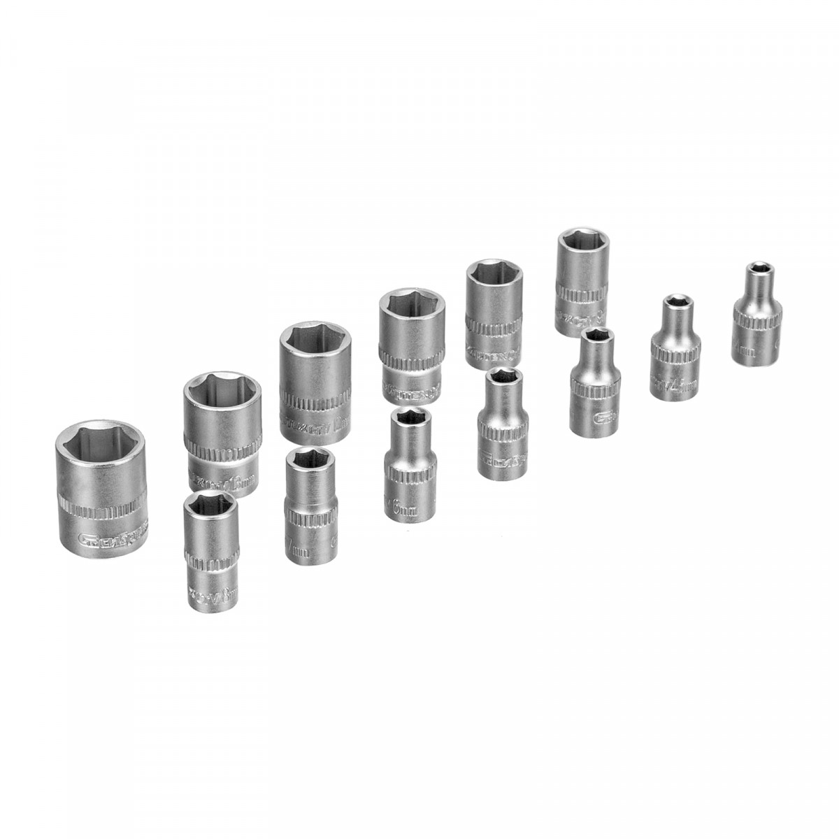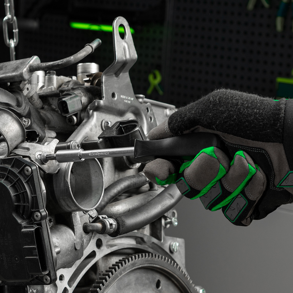• Прочная фиксация — шариковый замок на трещотках, воротках, шарнирах и удлинителях надежно удерживает торцевые головки.