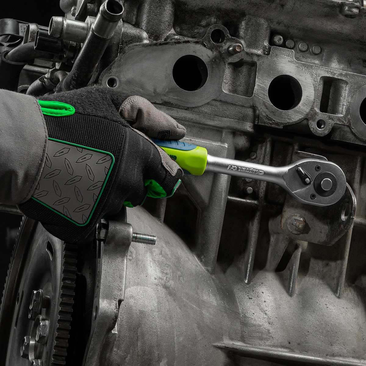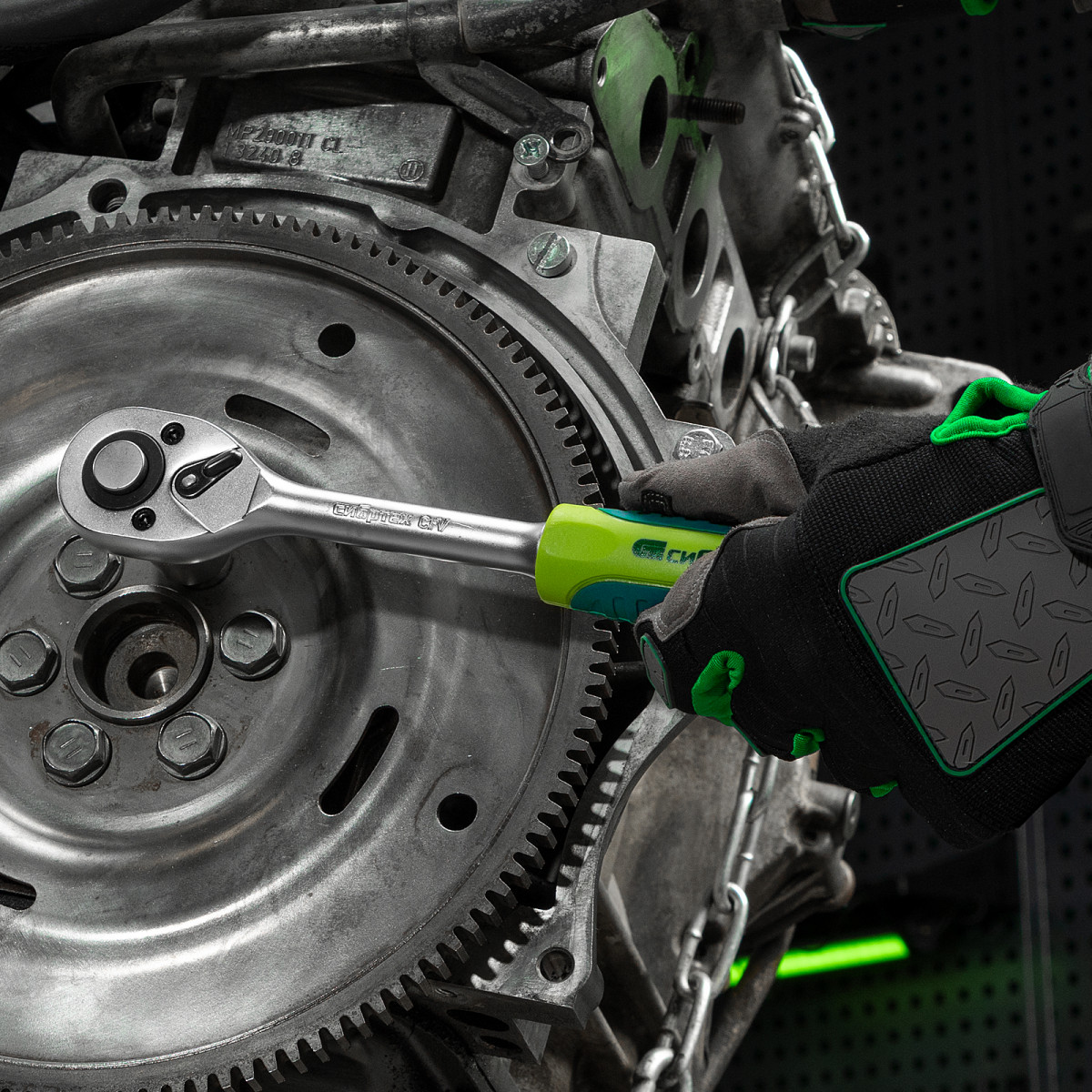 • Эргономичность — двухкомпонентные рукоятки трещоточных ключей удобно ложатся в руку.
