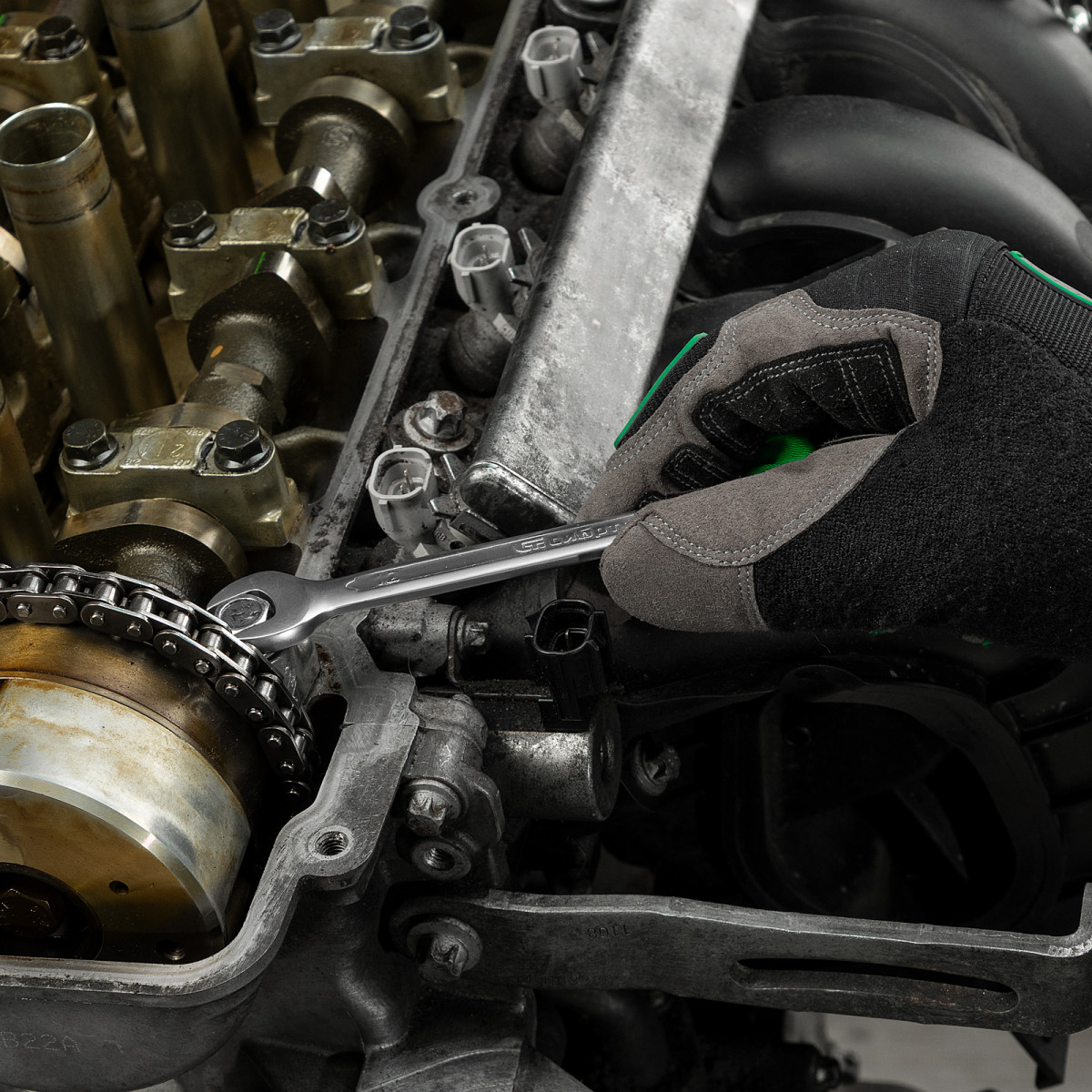 • Эффективная работа — у ключей-трещоток с 45 зубьями имеется механизм быстрого сброса и переключатель реверса с металлическим флажком.
