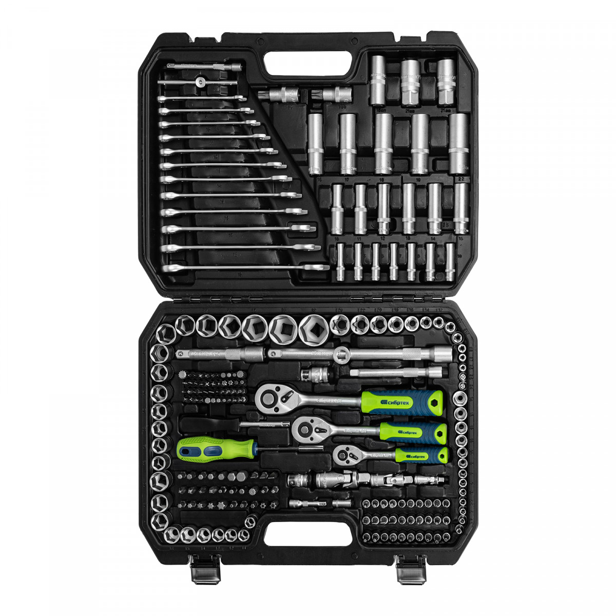 Набор инструментов, 1/2", 3/8", 1/4", пластиковый кейс 215 предм. Сибртех