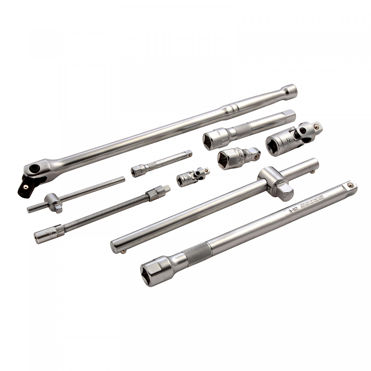 - Комфортный захват — благодаря антискользящим насечкам даже влажные или замасленные удлинители и насадки не выскальзывают из рук.