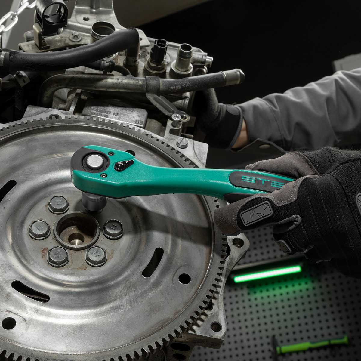 • Комфортная работа в труднодоступных местах — в набор входят ключи-трещотки с 72 зубьями, рабочий шаг составляет всего 5°.