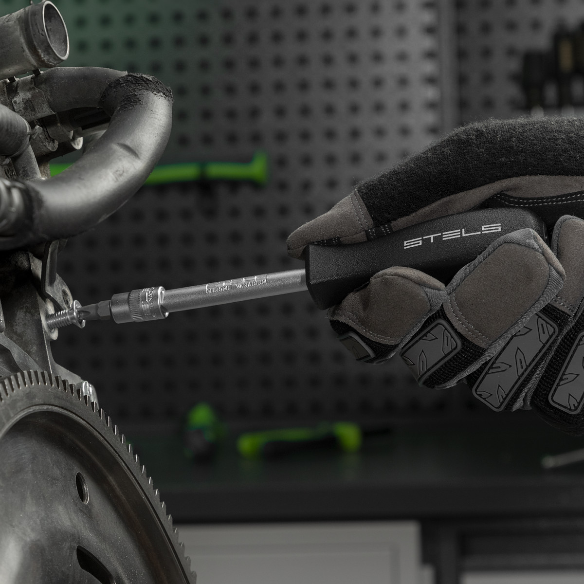 • Устойчивость к высоким нагрузкам — инструменты изготовлены из высокопрочной закаленной стали CrV, отвертки, биты и биты-вставки выполнены из японской легированной стали S2.