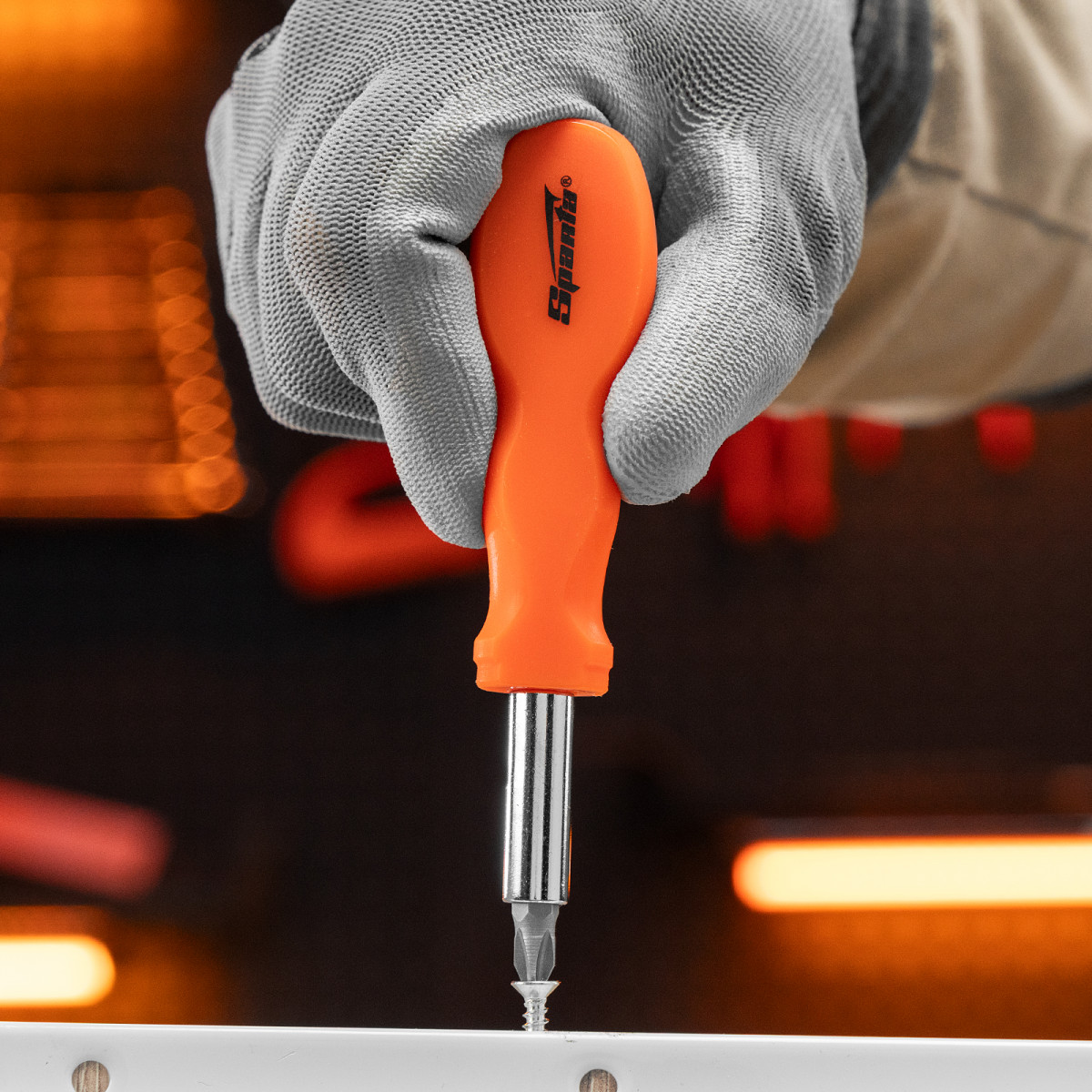 Набор Sparta 13546, 19 предметов, пригодится при выполнении слесарно-монтажных работ. Он будет полезен в хозяйстве для частных мастеров. В наборе есть отвертки для точных работ, отвертка для бит, биты и торцевые головки для монтажа/демонтажа крепежных элементов, бокорезы и длинногубцы для захвата, удержания и перекусывания проводов и мелких деталей.