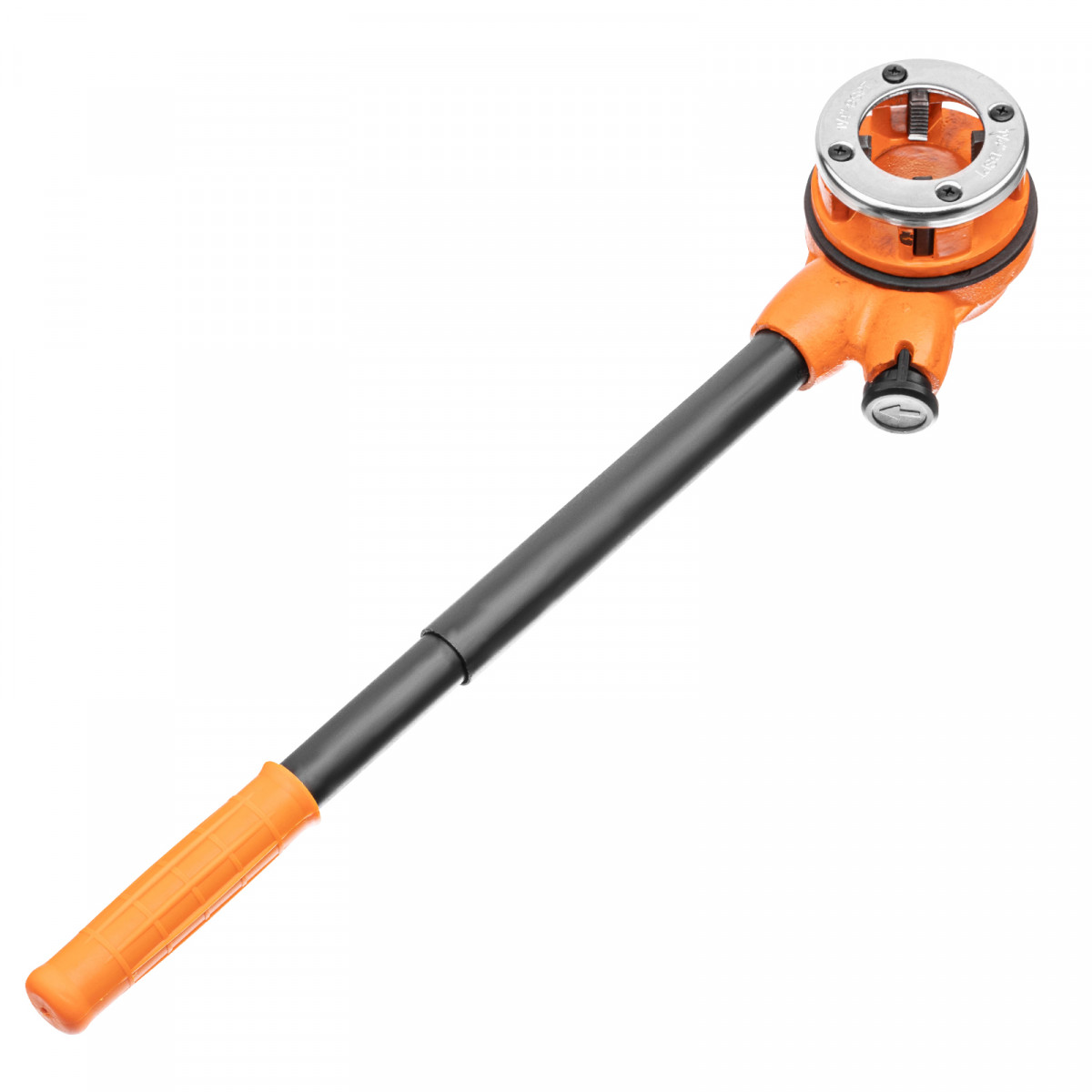 Набор Sparta 773355 включает в себя 9 предметов: клуппы наиболее востребованных размеров 1/4″, 3/8″, 1/2″, 3/4″, 1″ и 1 1/4″, а также плашкодержатель с трещоткой и удлинителем. Пригодится частному мастеру для нарезания внешней резьбы на новых трубах или ремонта старых. Плашкодержатель оснащен трещоточным механизмом, который наиболее эффективно передает рабочее усилие, а также позволяет работать в труднодоступных местах.