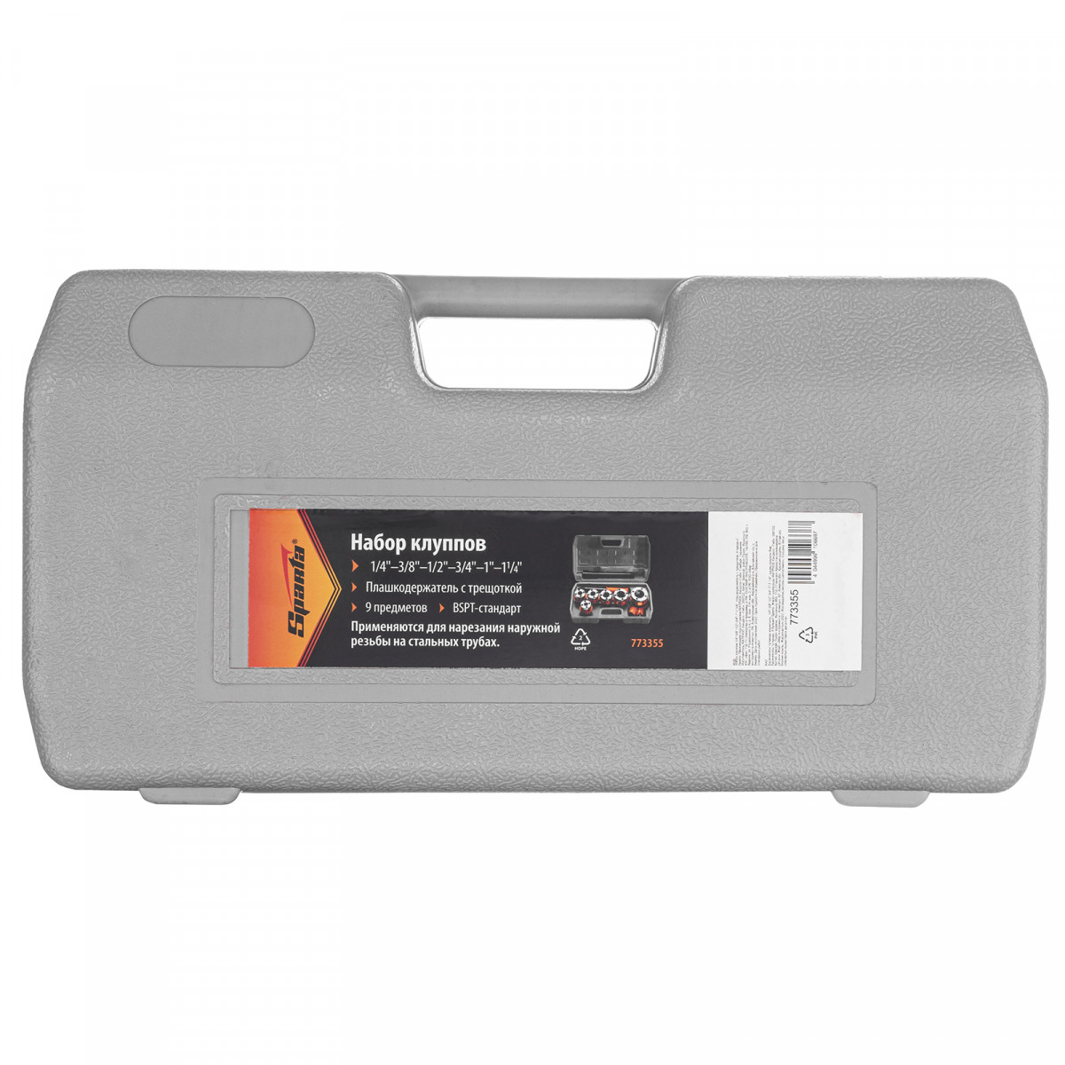 Набор клуппов 1/4-3/8-1/2-3/4-1-1.25", плашкодержатель с трещоткой, 9 предметов Sparta