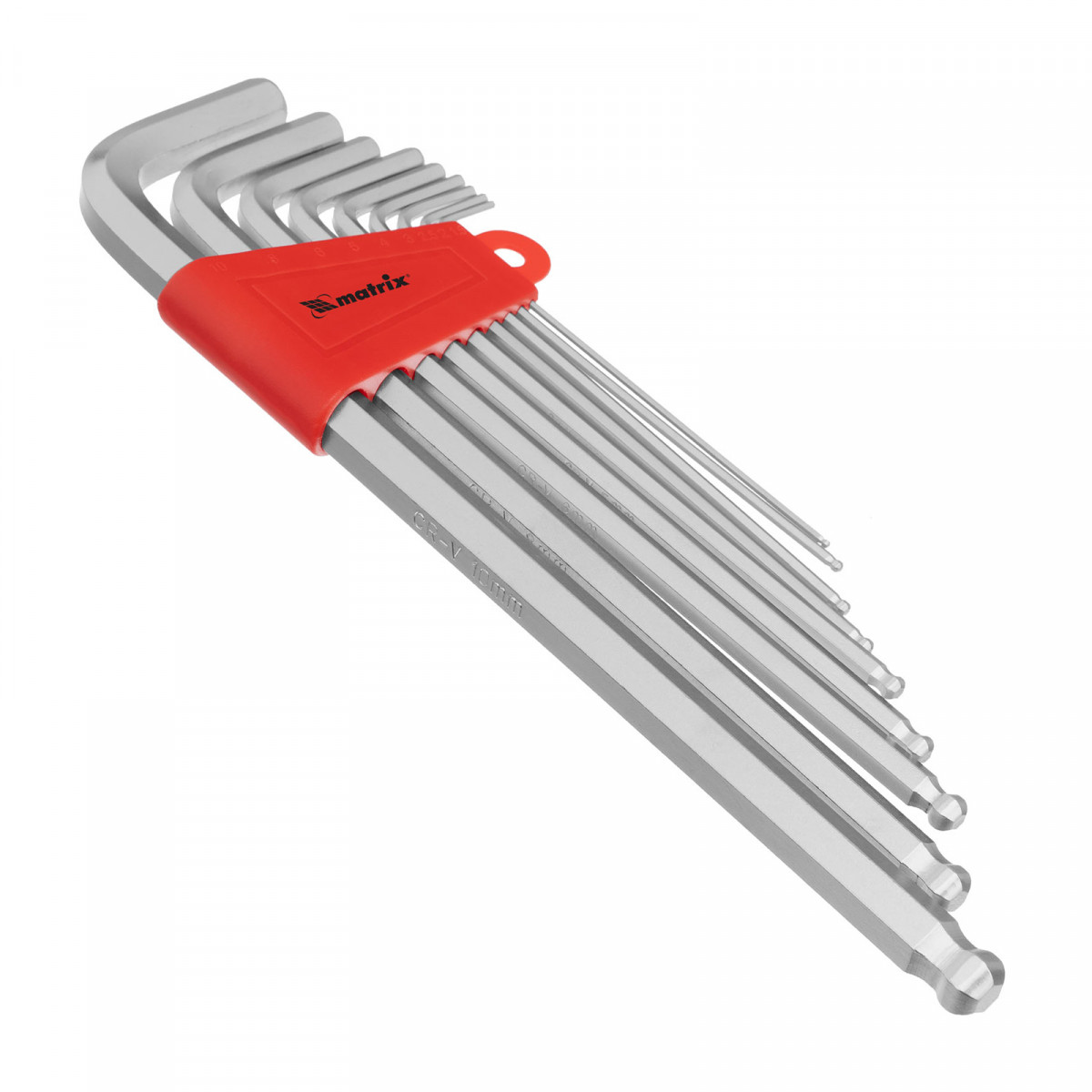 Набор ключей имбусовых HEX, 1.5-10 мм, CrV, 9 шт, экстра-длинные, c шаром, сатин Matrix