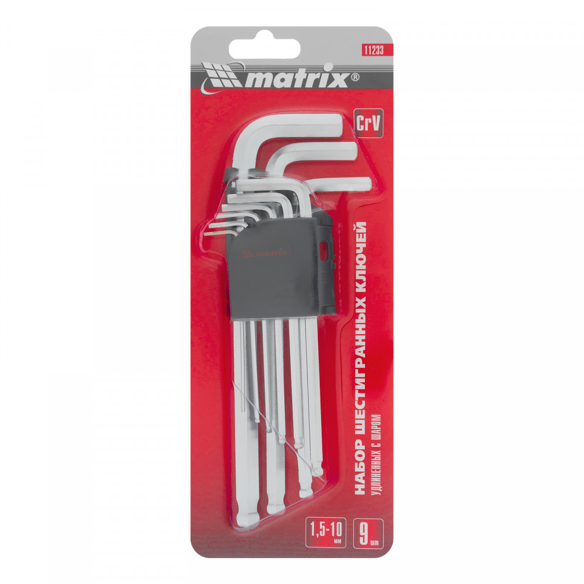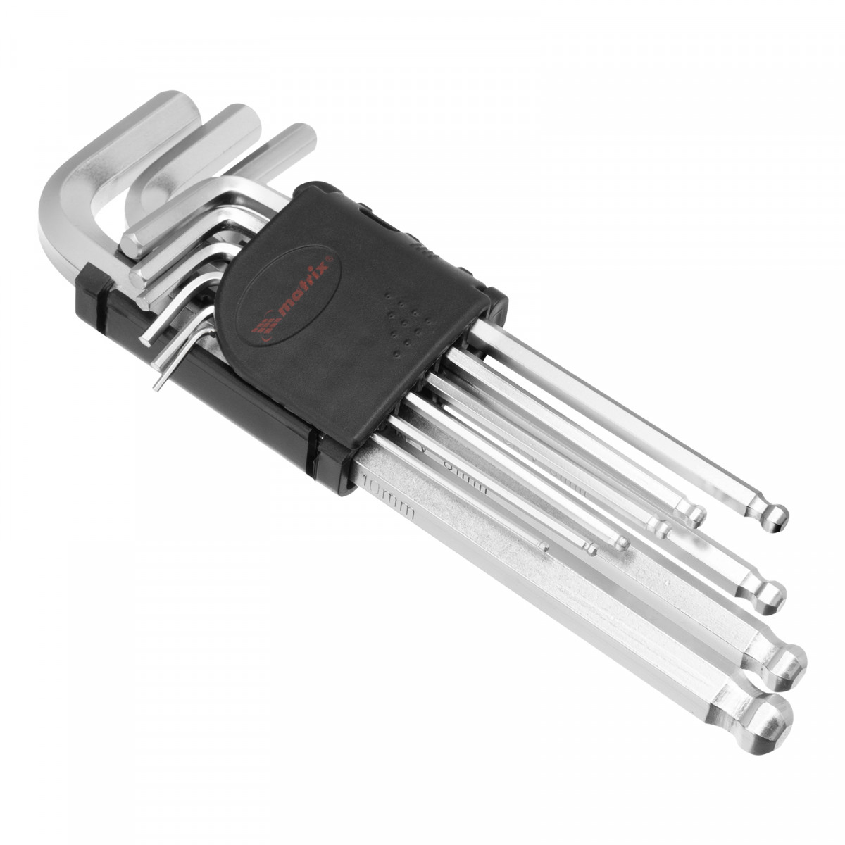 Набор ключей имбусовых HEX, 1.5-10 мм, CrV, 9 шт, удлиненные, сатин, с шаром Matrix