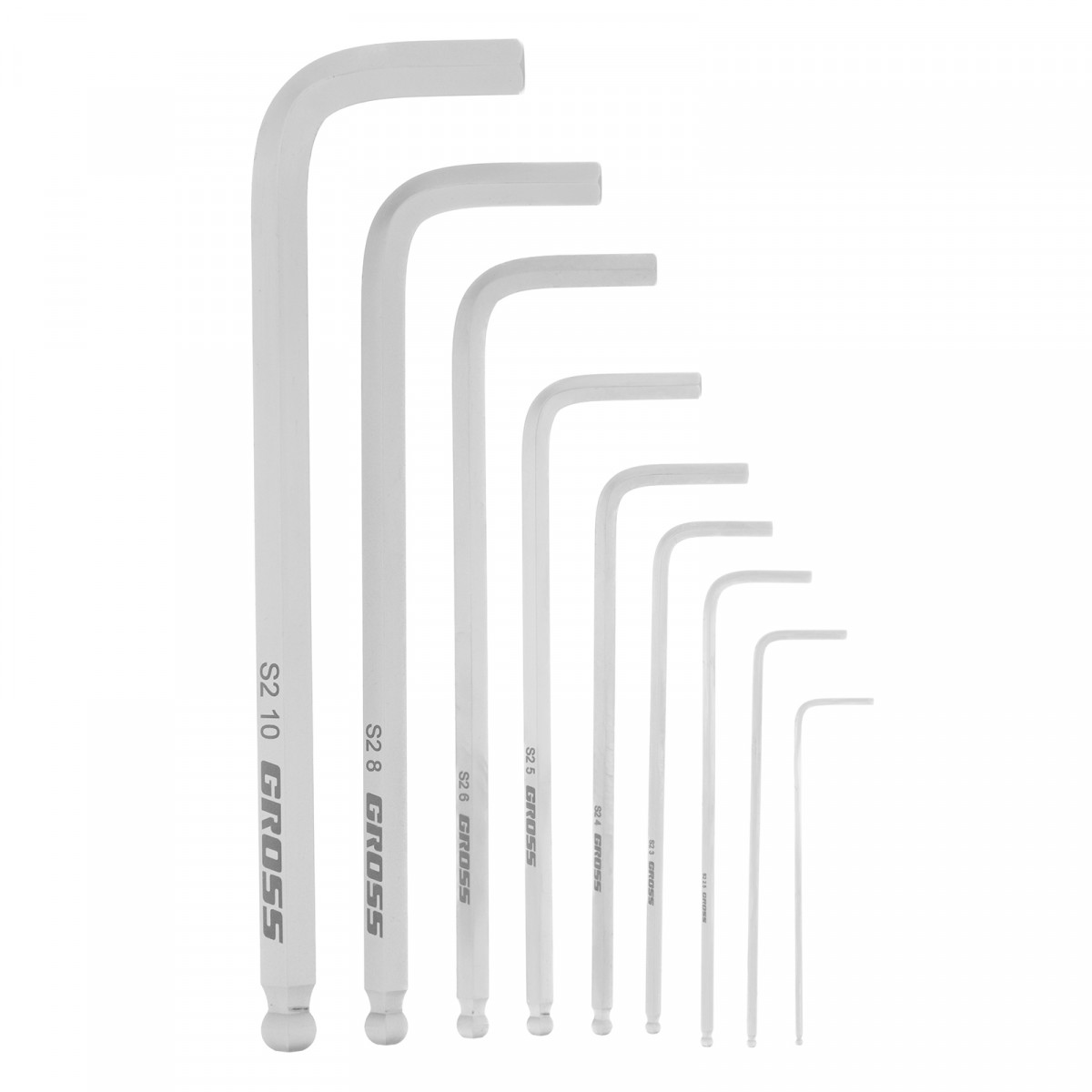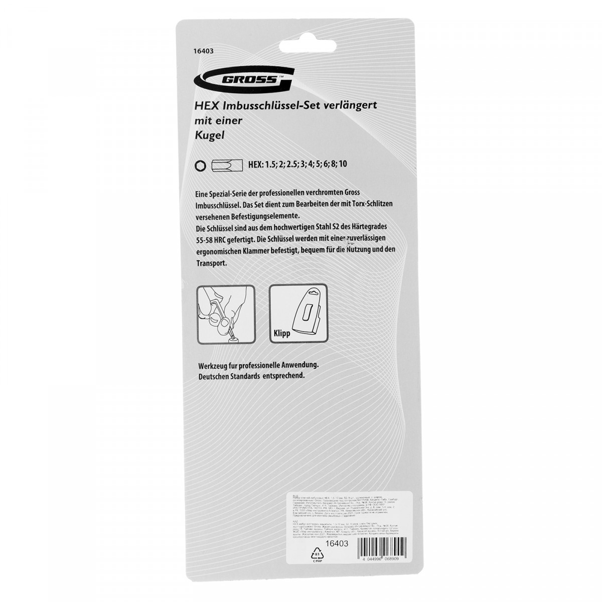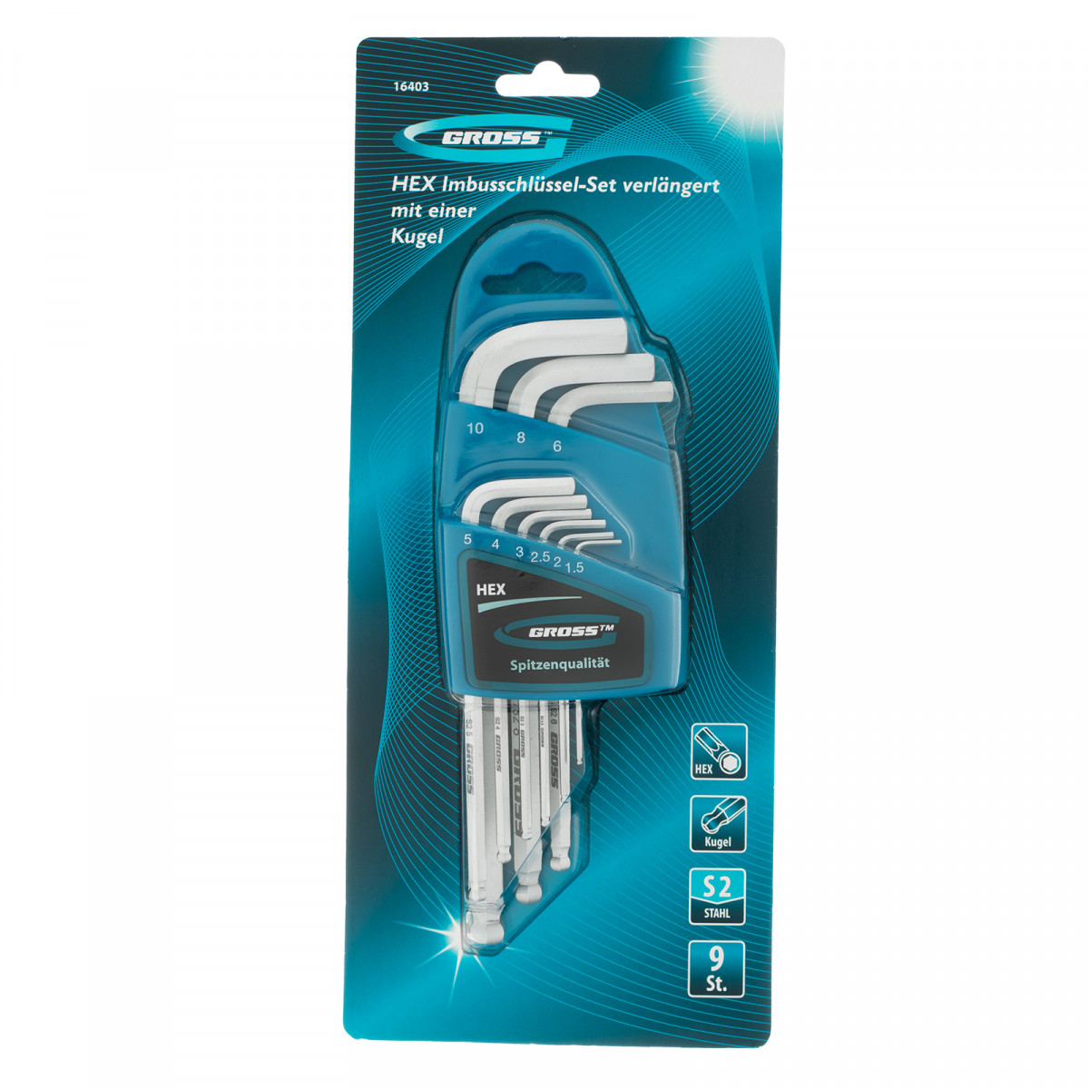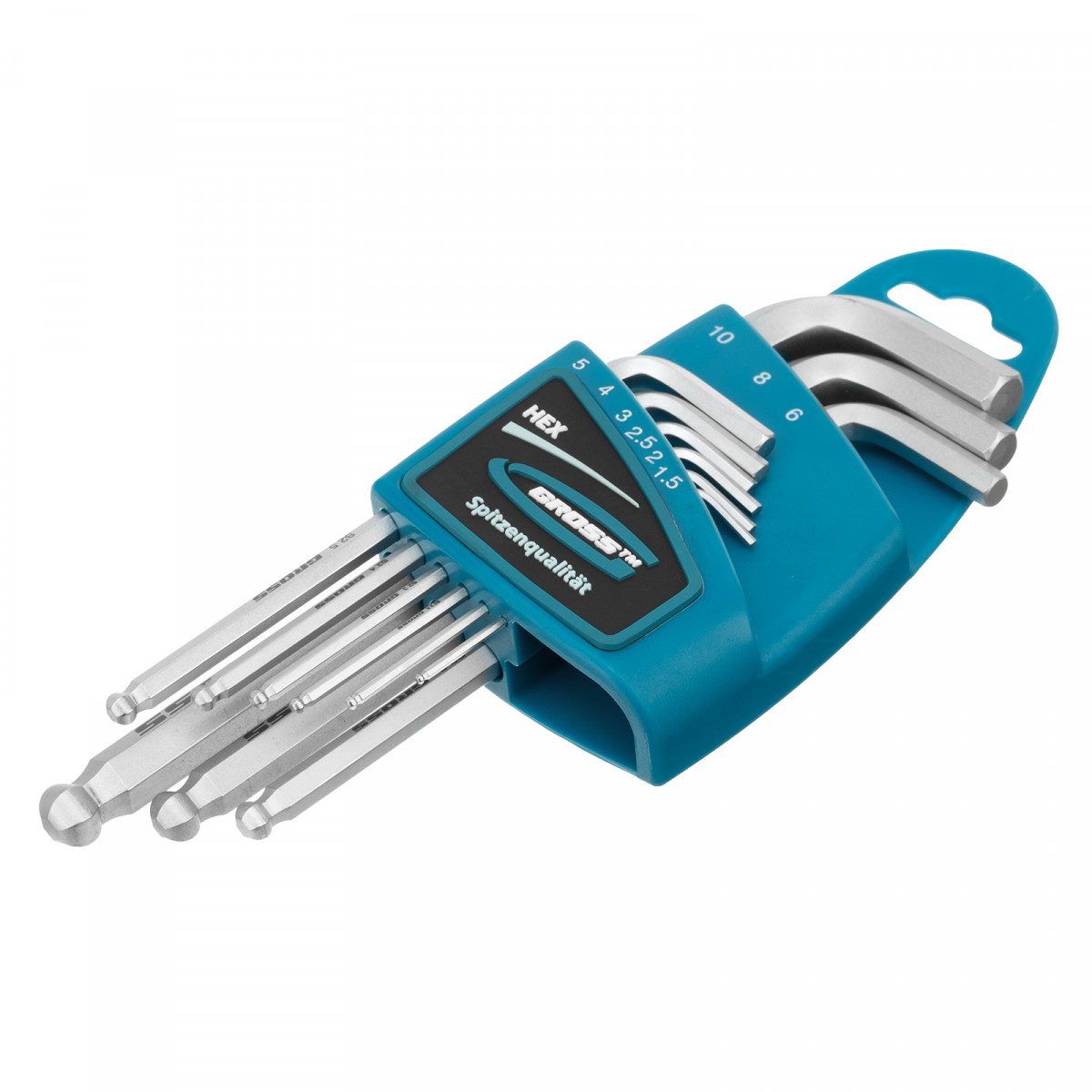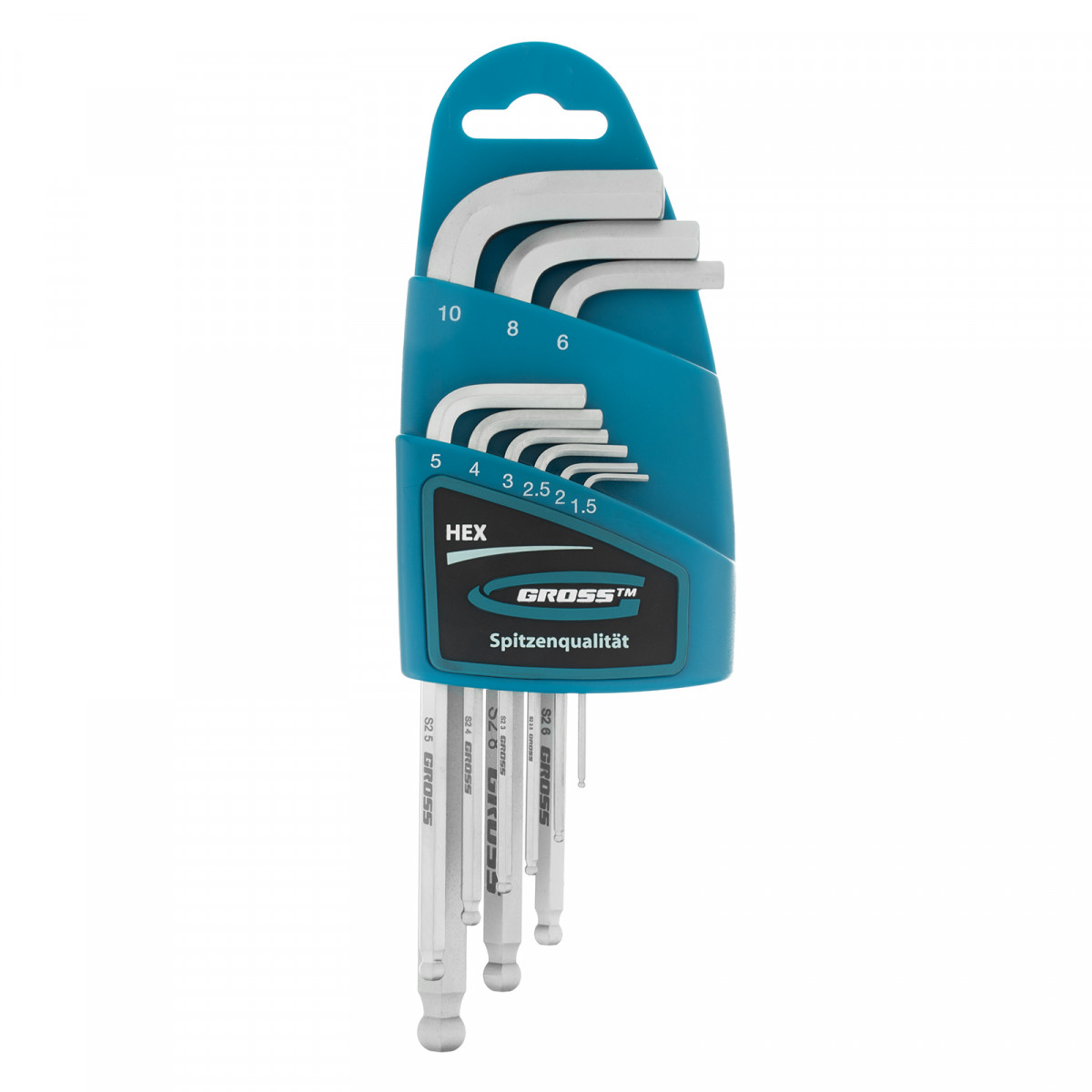 Набор ключей имбусовых HEX, 1.5-10 мм, S2, 9 шт, удлиненные с шаром, сатинированные Gross