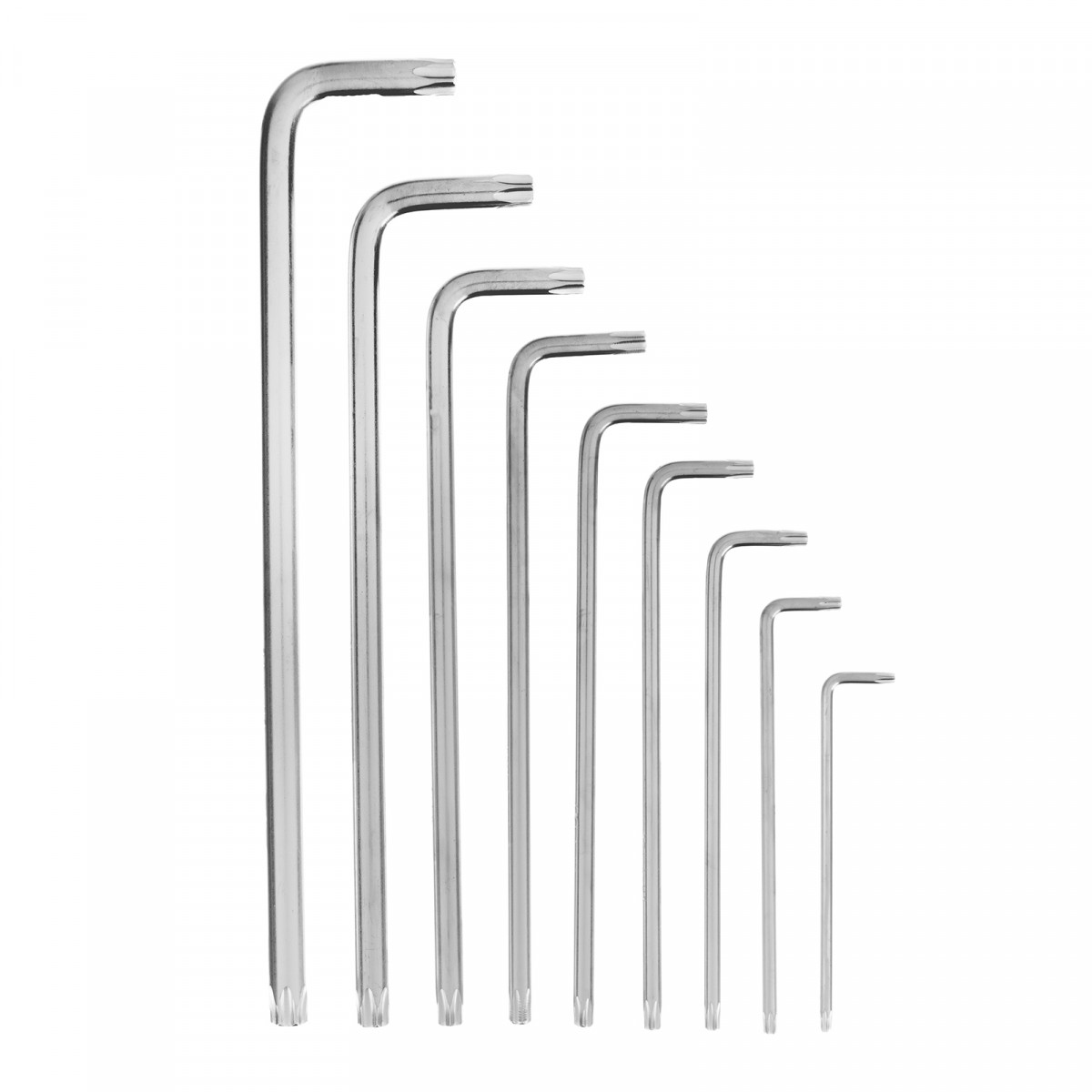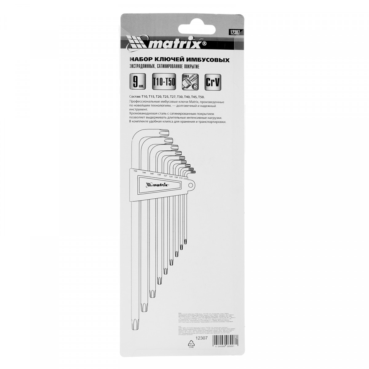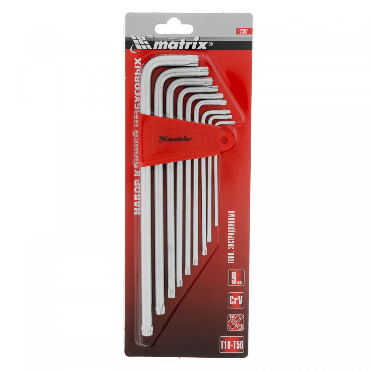 Набор Matrix 12307, включающий 9 экстра-длинных имбусовых сатинированных ключей TORX из стали CrV, используется для работ с крепежом Т10-Т50, имеющим звездообразный профиль. Пригодится частному мастеру для ремонта бытовой техники и электроприборов. Экстра-длинные ключи удобны для работы в труднодоступных местах.
