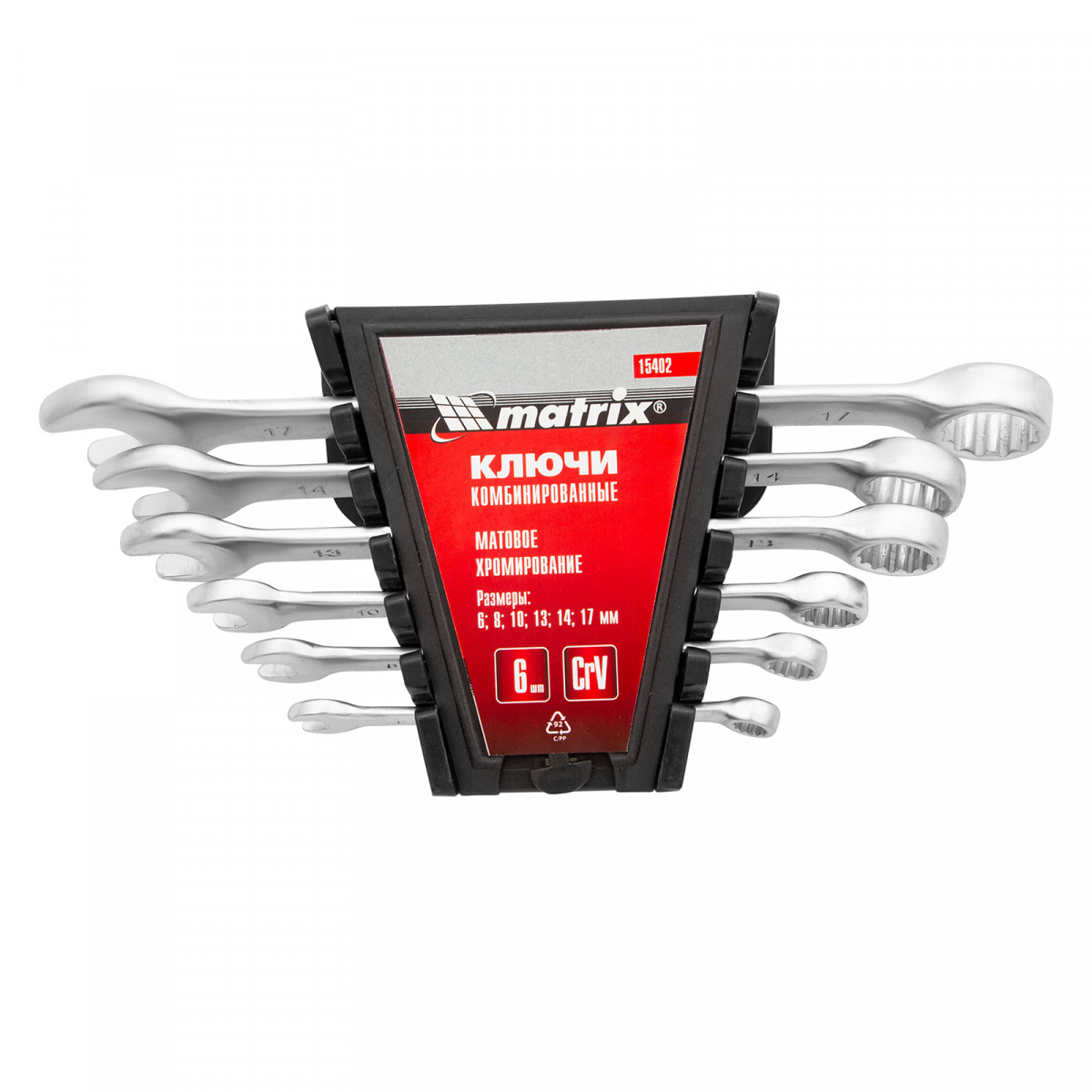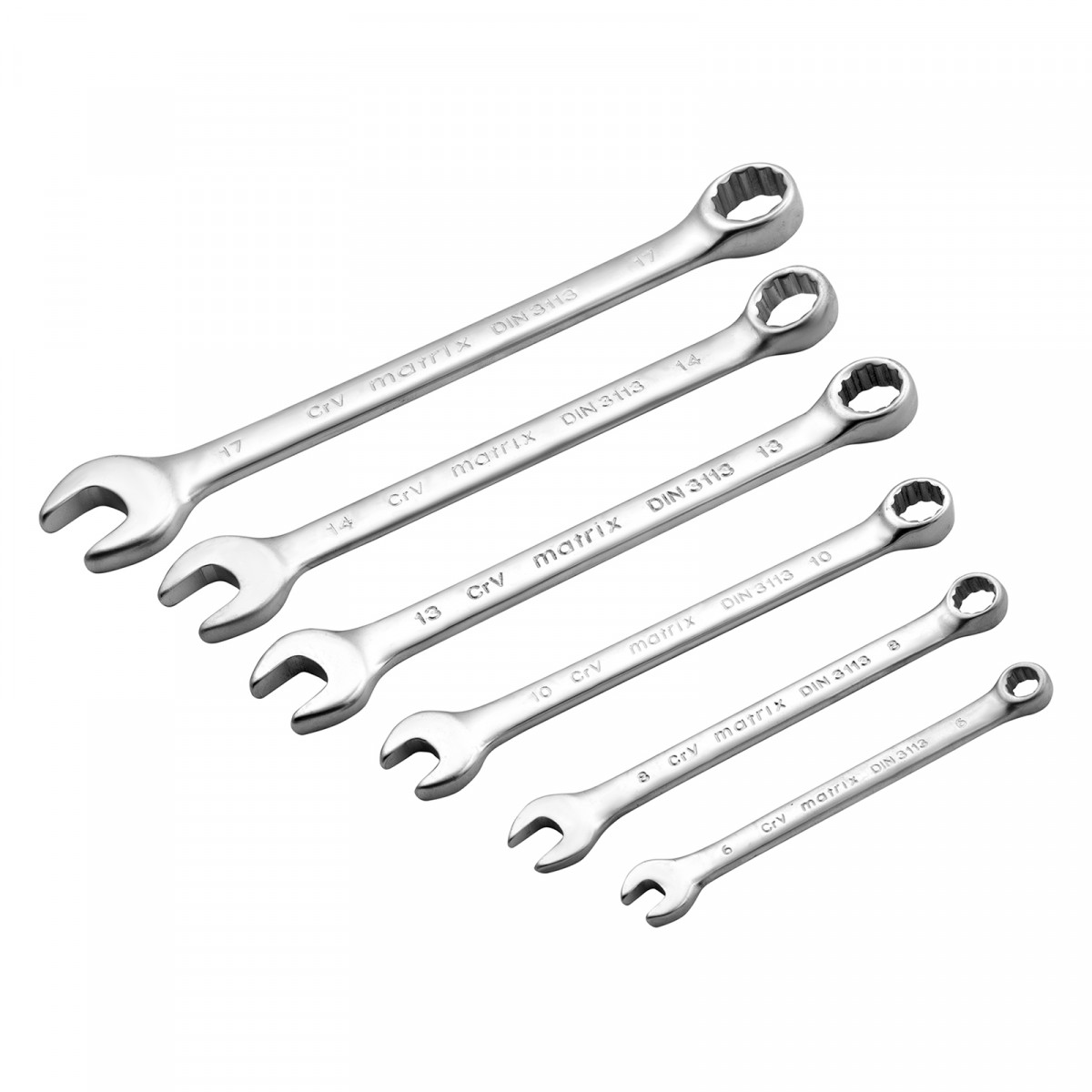 Набор ключей комбинированных, 6-17 мм, 6 шт, CrV, матовый хром Matrix