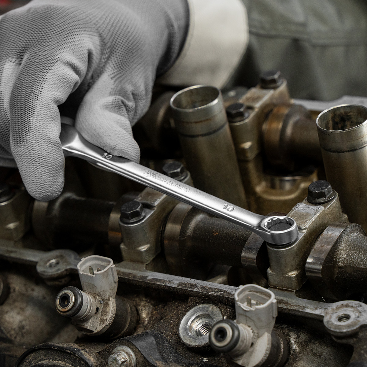 - Аккуратная работа — накидные части с 12-гранным профилем охватывают всю поверхность крепежа, уменьшая риск деформации его граней.