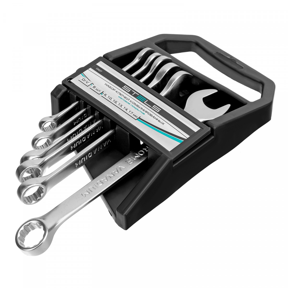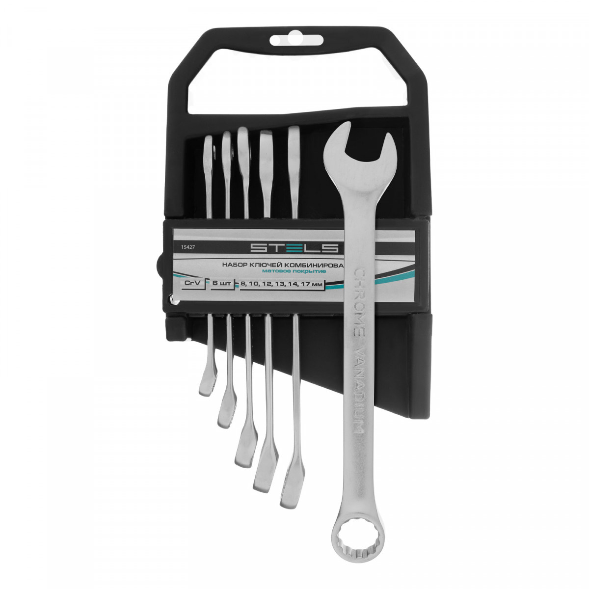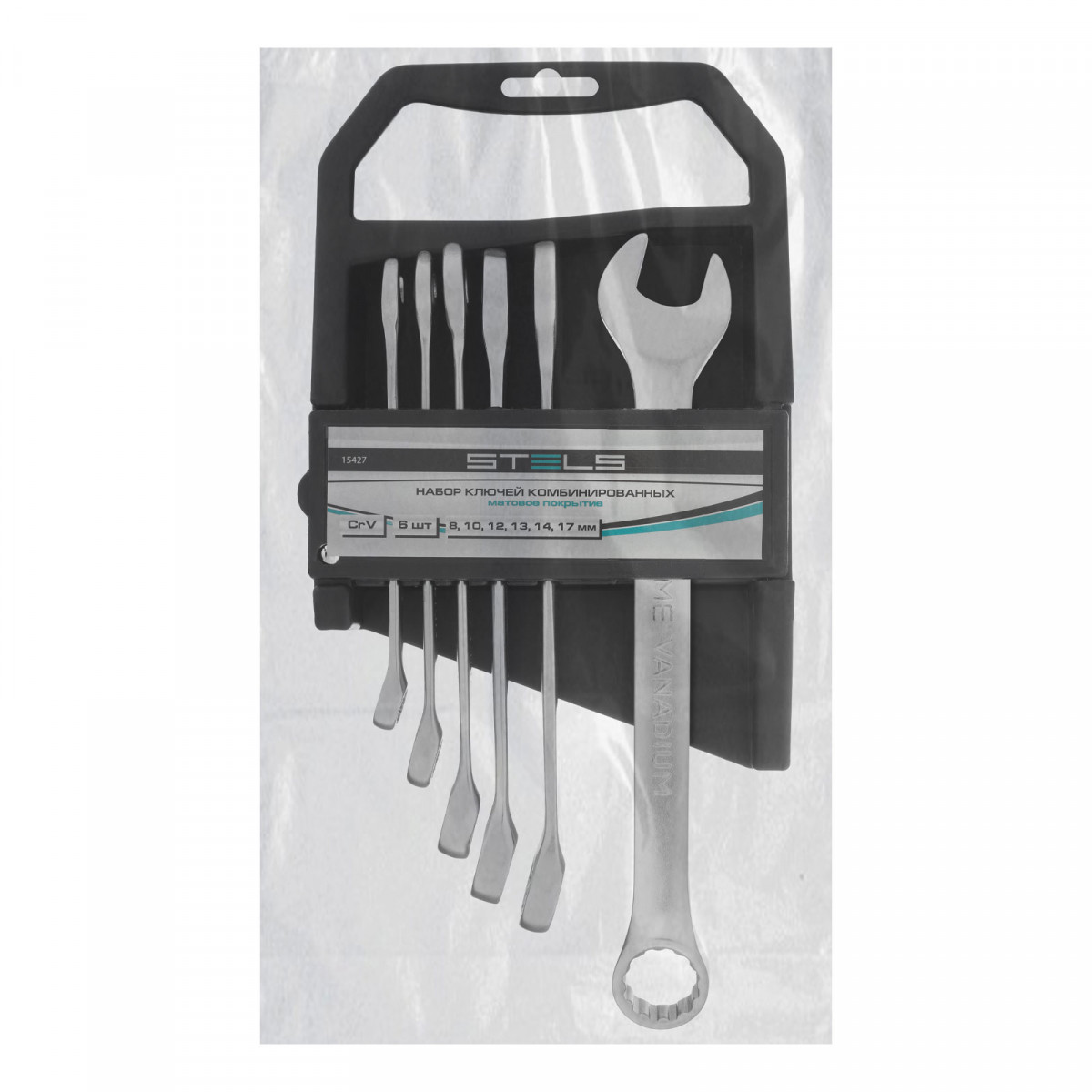 Набор ключей комбинированных, 8-17 мм, 6 шт, CrV, матовый хром Stels