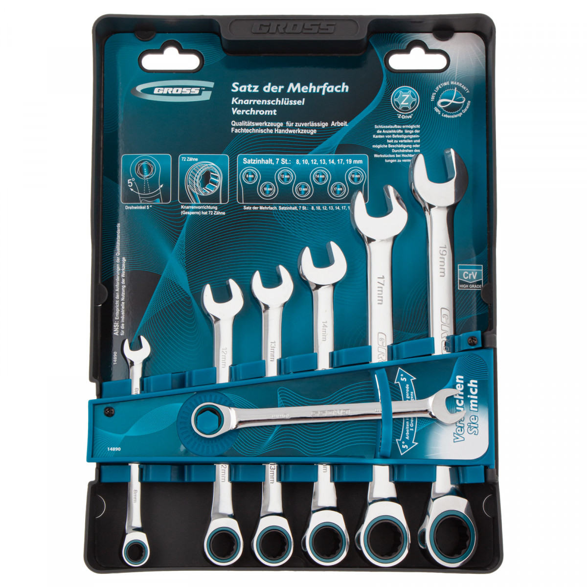 Набор ключей комбинированных с трещоткой, 8-19 мм, 7 шт, CrV Gross