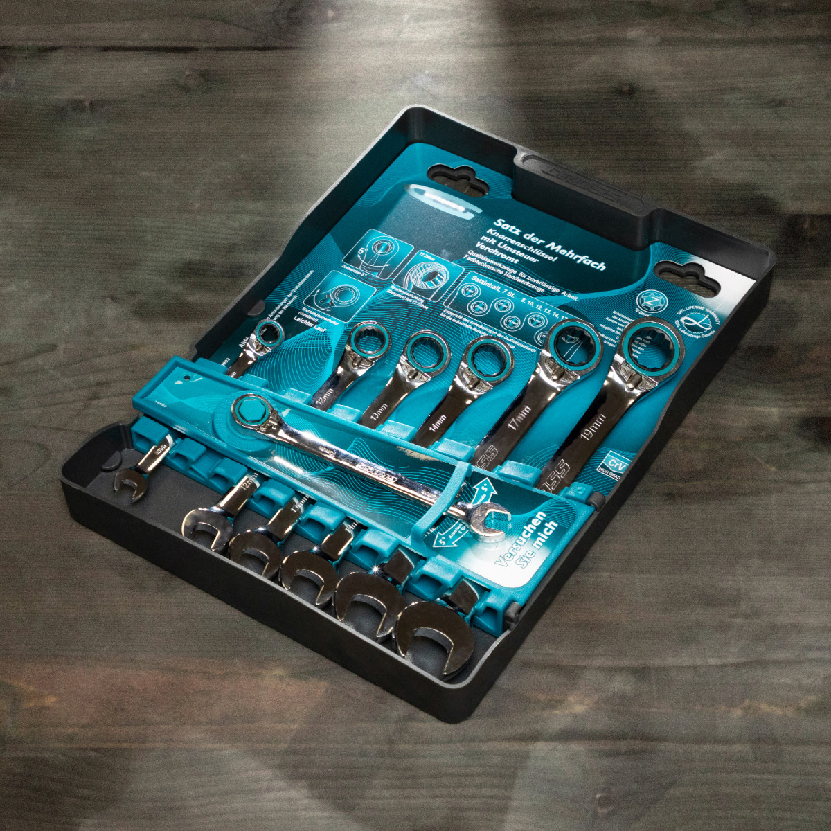 Набор ключей комбинированных с трещоткой, 8-19 мм, 7 шт, реверсивные, CrV Gross