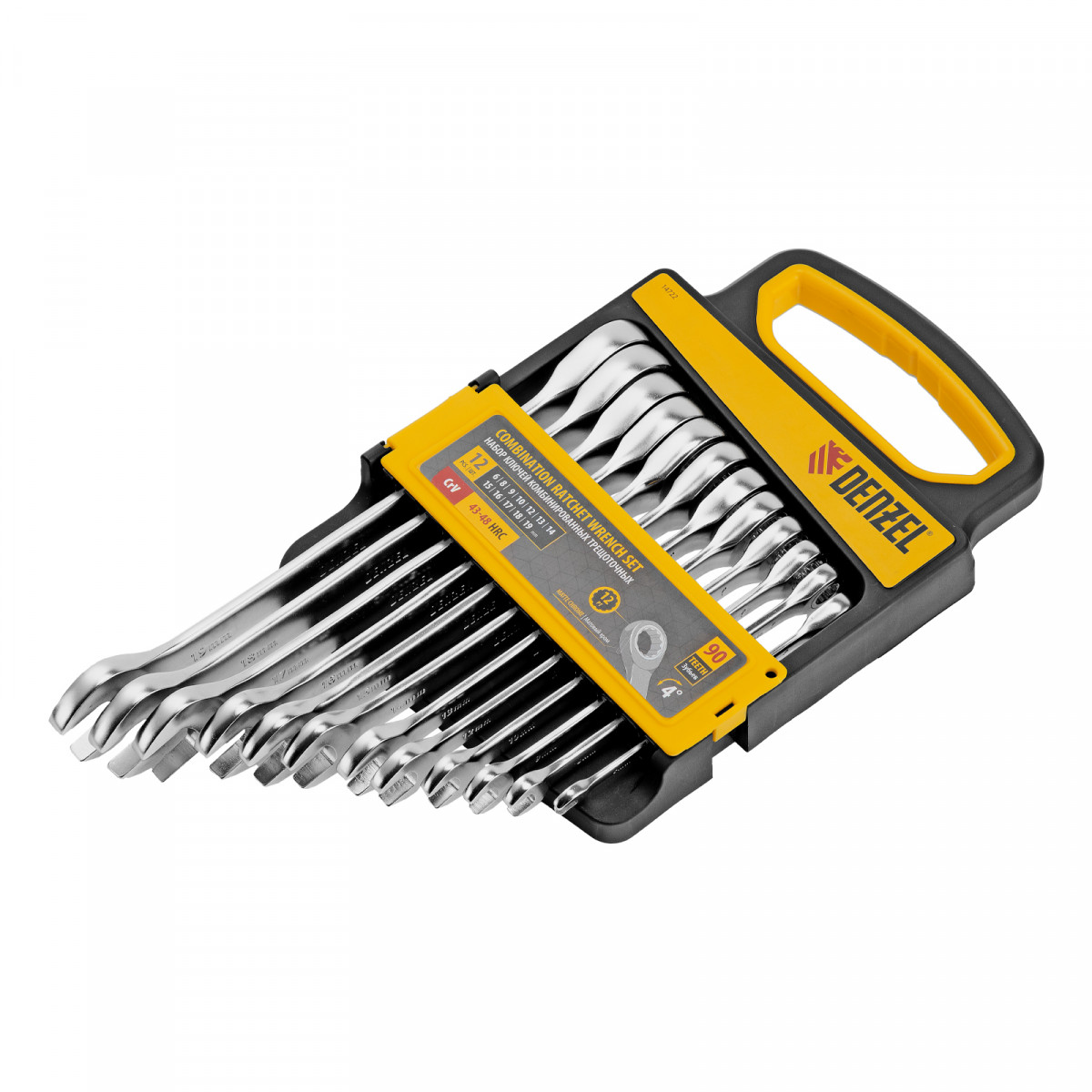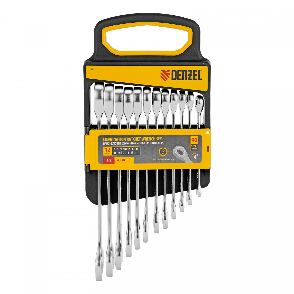 Набор ключей комбинированных трещоточных 6-19 мм, 12 шт., CrV, матовый хром Denzel
