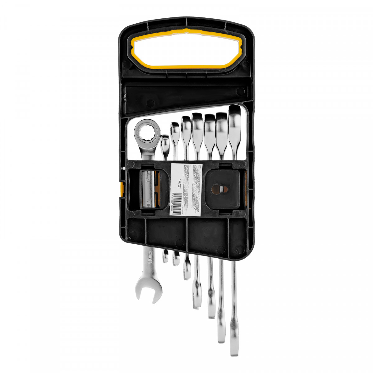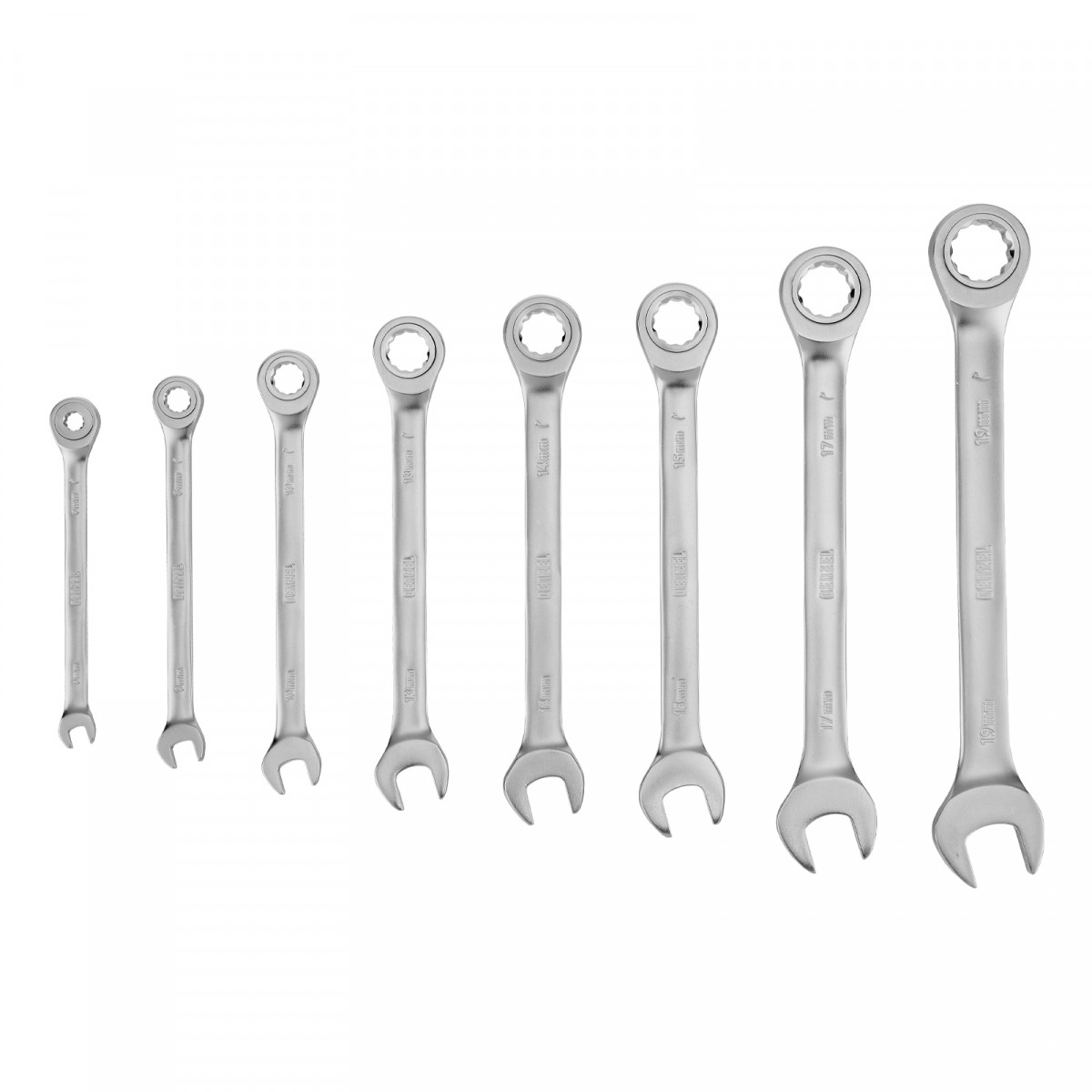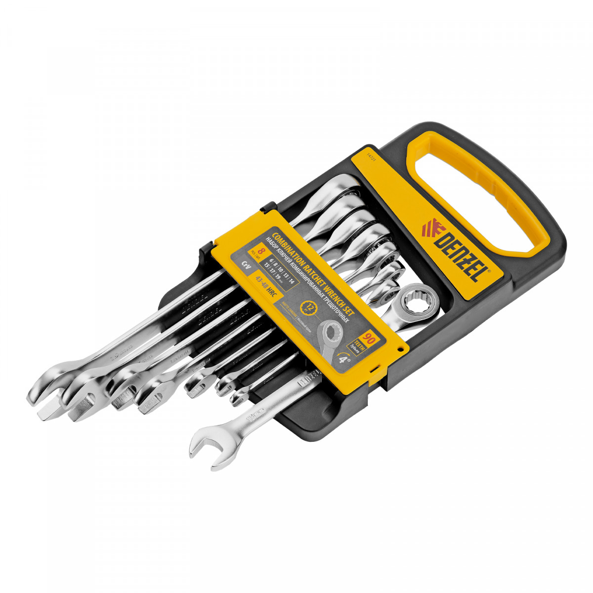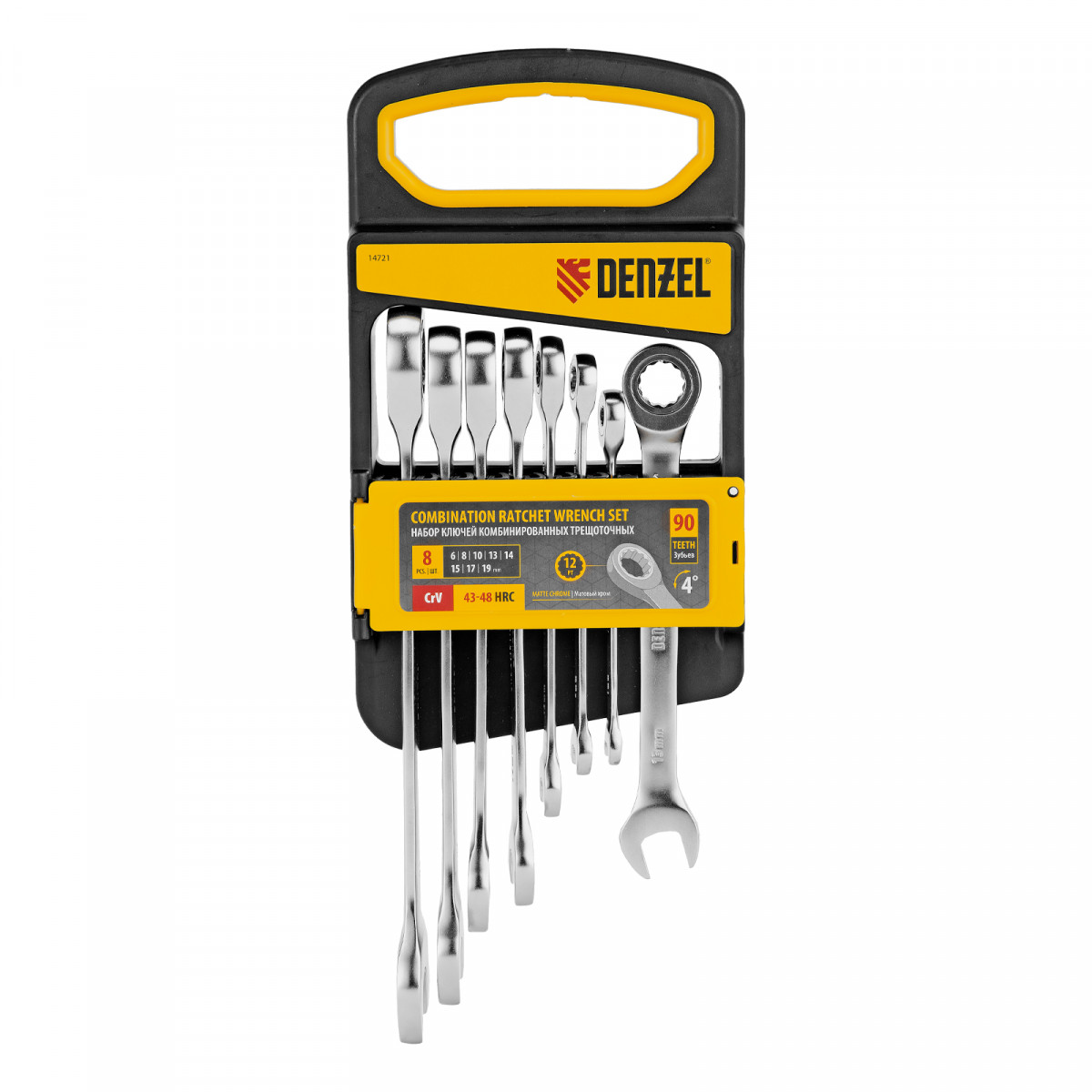 Набор ключей комбинированных трещоточных 6-19 мм, 8 шт., CrV, матовый хром Denzel