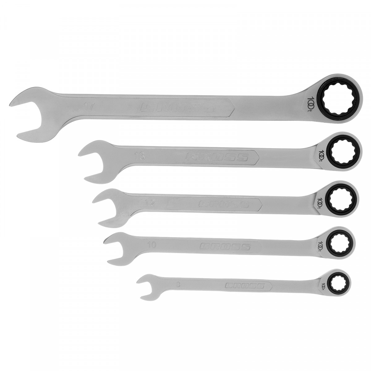 Набор ключей комбинированных трещоточных, количество зубьев 100, СRV, 5 шт, 8- 17 мм Gross