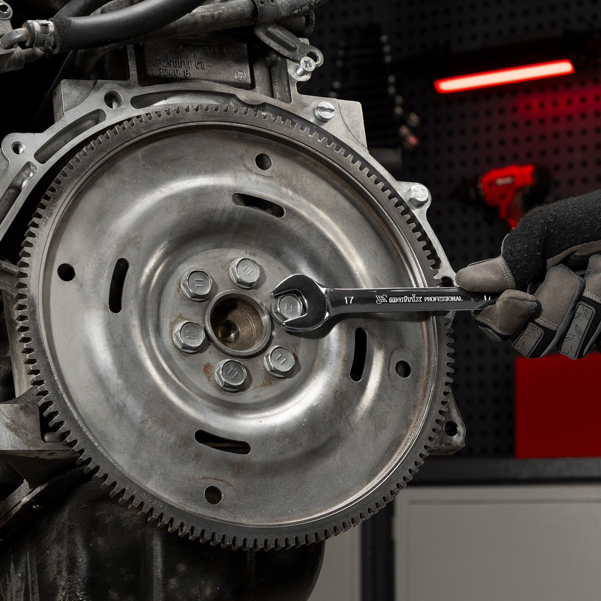 Набор из 13 комбинированных трещоточных шарнирных ключей Matrix 14798 пригодится мастерам и автолюбителям для фиксации и раскручивания крепежных элементов. Трещоточный механизм повышает скорость работы и легко справляется даже с закисшим крепежом.