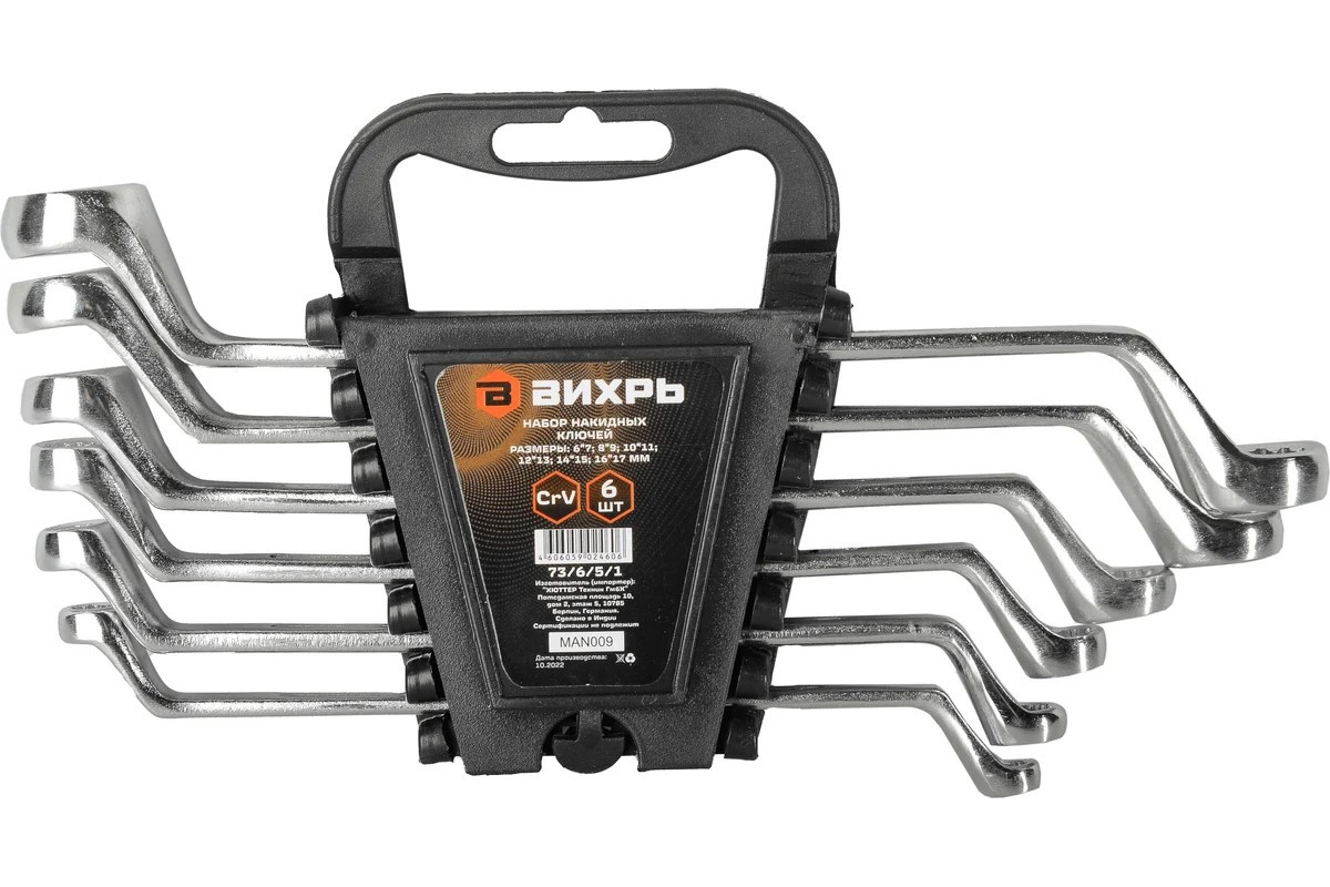 Набор ключей накидных 6-17 мм (6 шт) ВИХРЬ