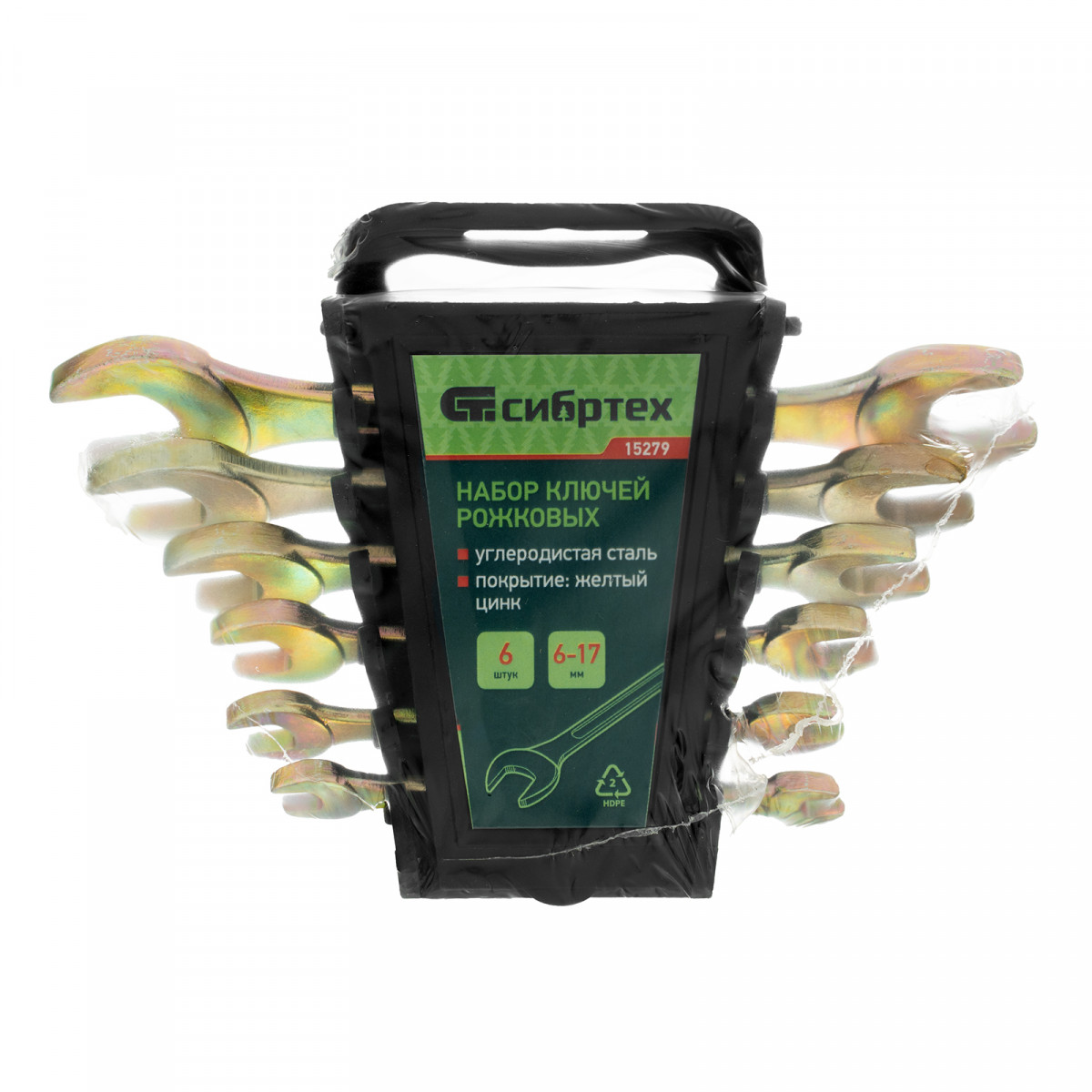 Набор ключей рожковых 6-17 мм, 6 шт, желтый цинк Сибртех